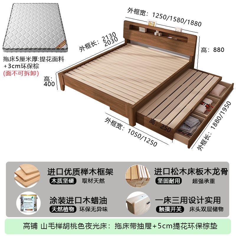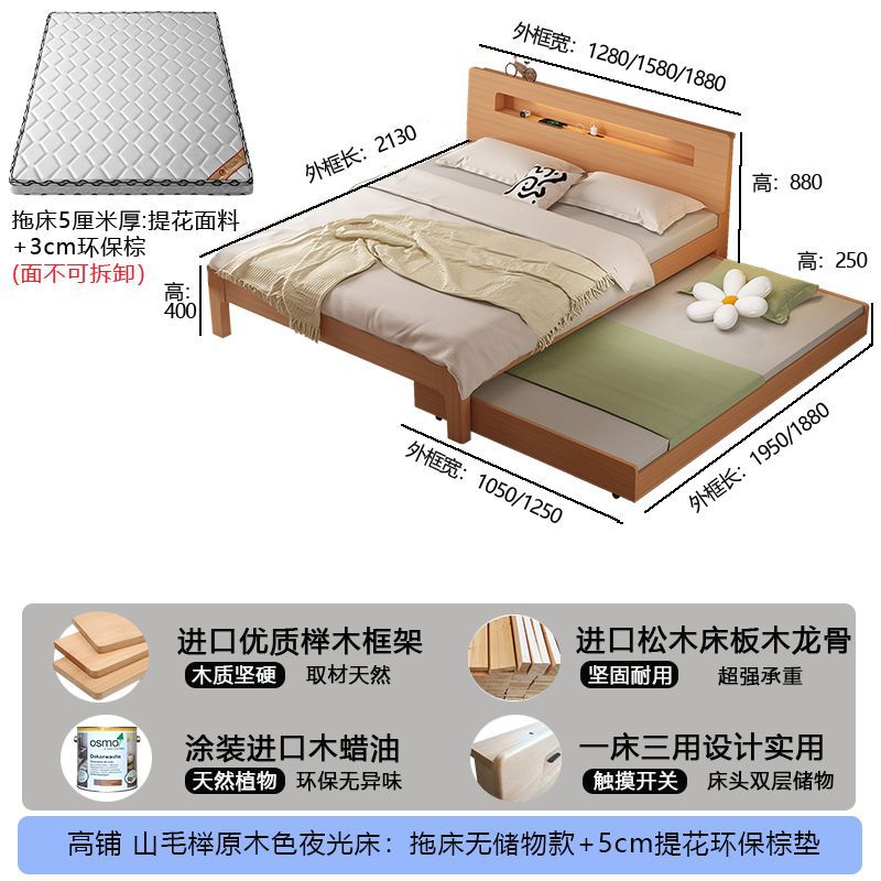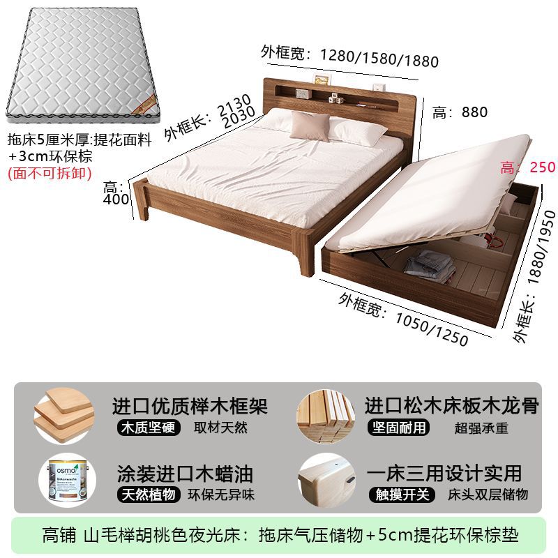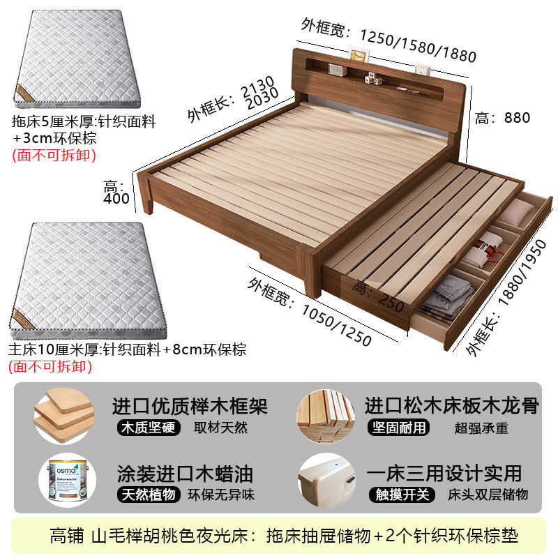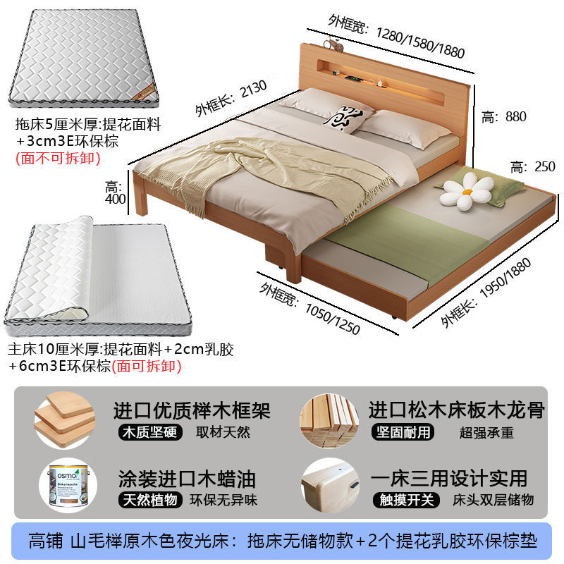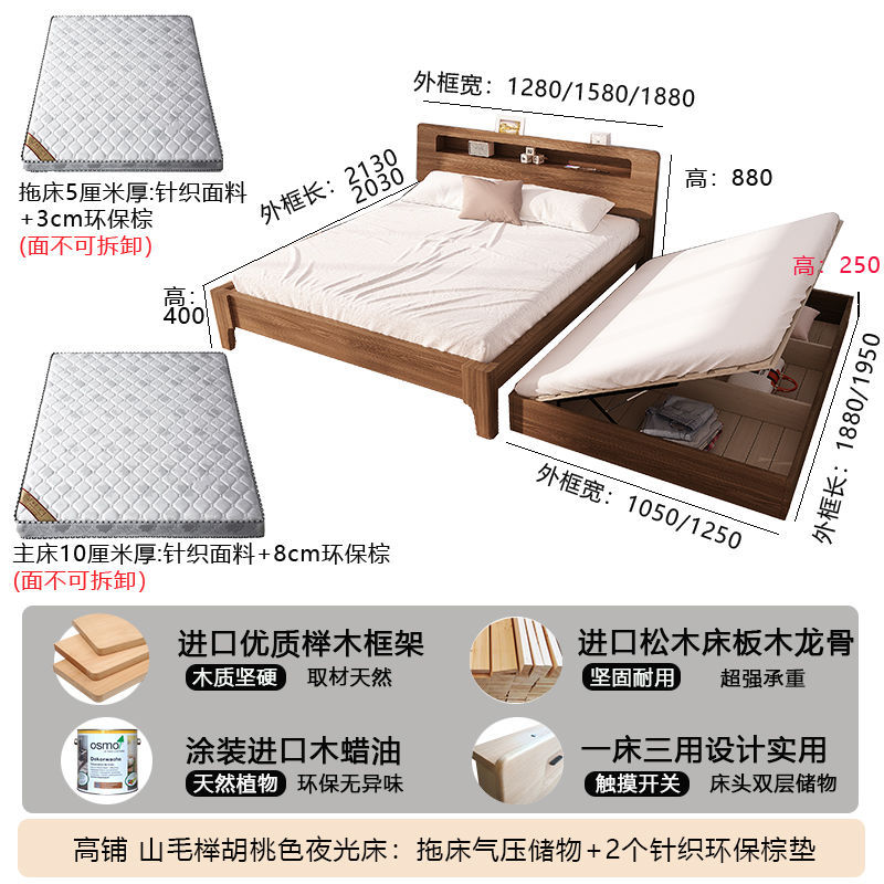 모든 원목 침대, 더블 침대, 소형 아파트, 너도밤나무 다기능 수납 침대, 어린이 이층 침대, 드래그 침대, 풀아웃 침대