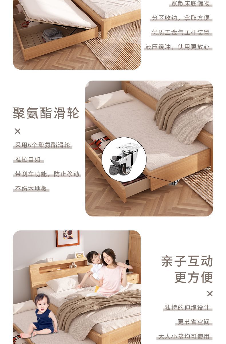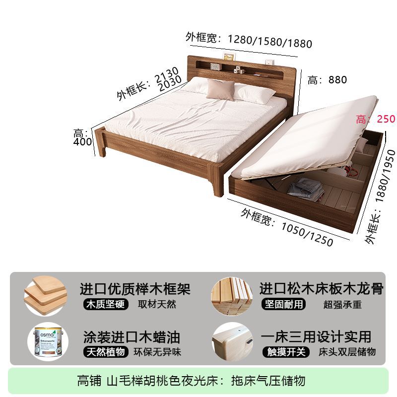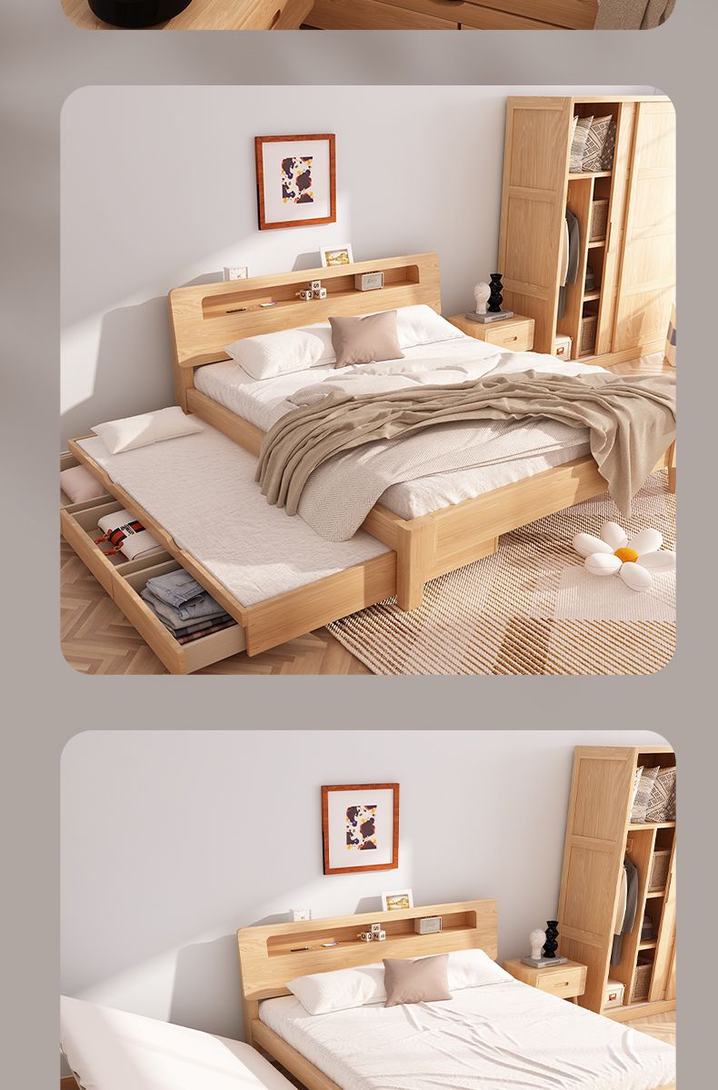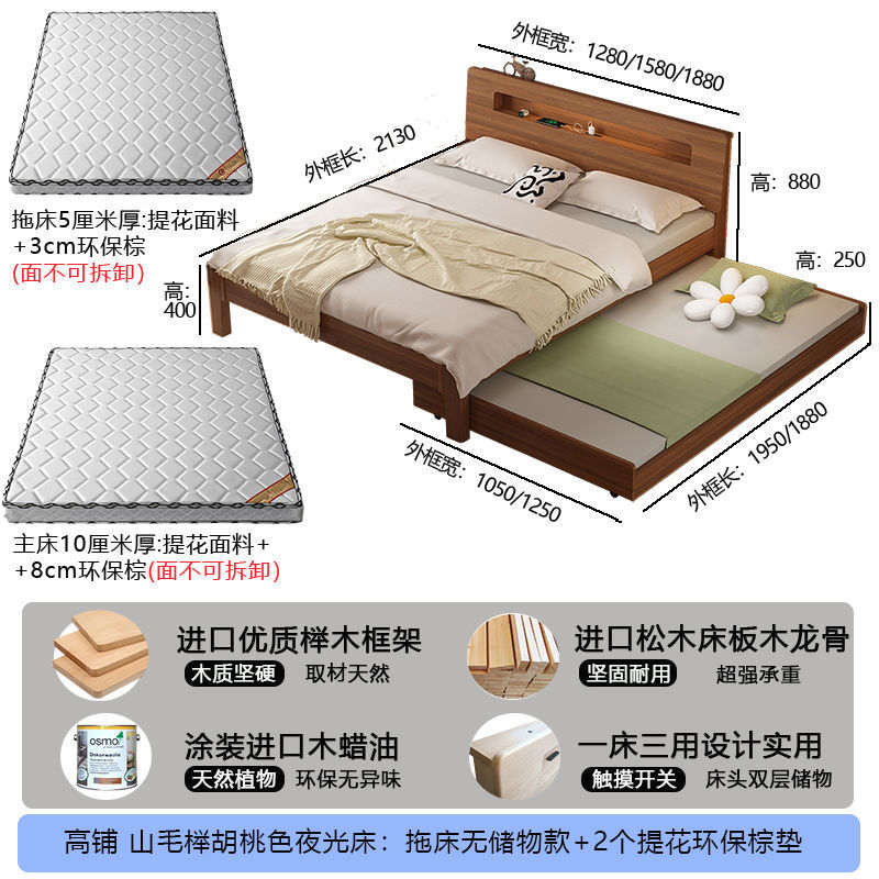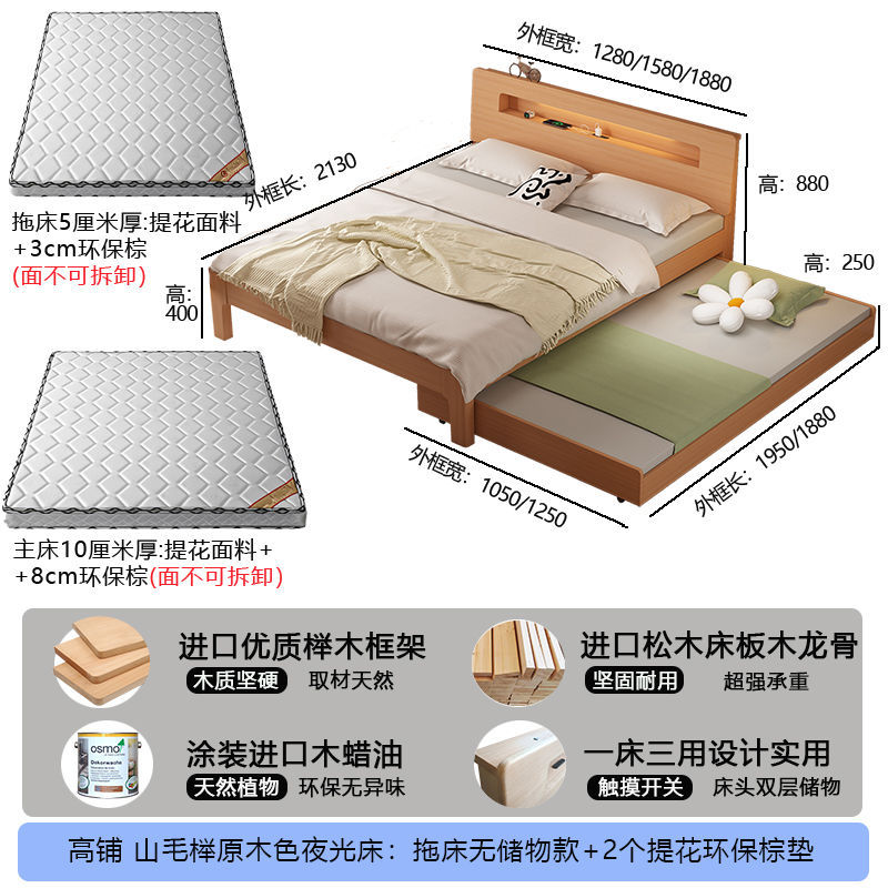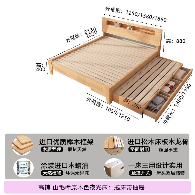 모든 원목 침대, 더블 침대, 소형 아파트, 너도밤나무 다기능 수납 침대, 어린이 이층 침대, 드래그 침대, 풀아웃 침대