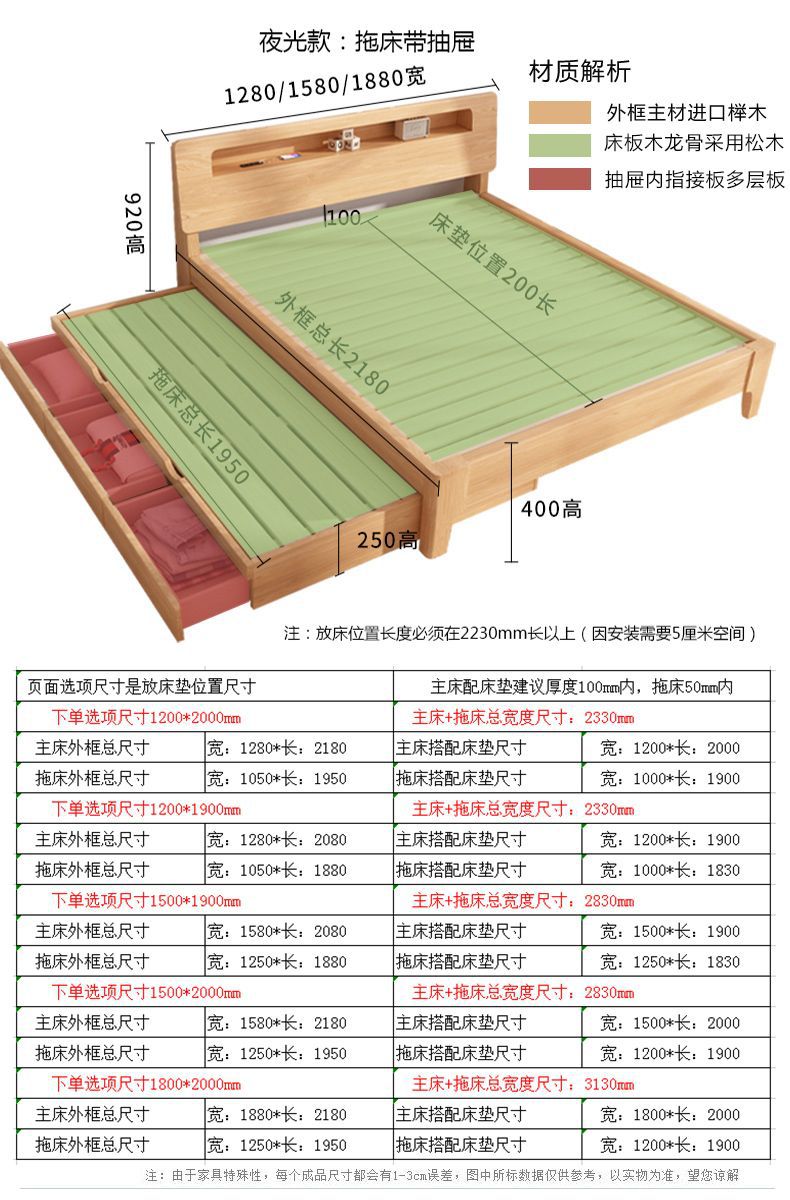 • 너도밤나무 색상 야광: 드래그 침대 서랍 + 5cm 자카드 매트