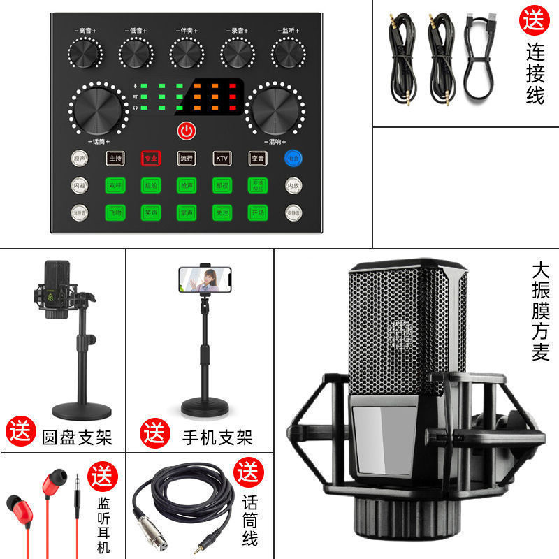 • V8 사운드 카드 + 대형 다이어프램 사각 마이크 세트【】