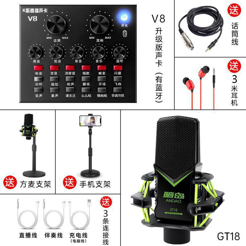 V8 사운드 카드 세트 앵커 라이브 방송 장비 사운드 카드 휴대 전화 Kuaishou 노래 마이크 마이크 전체 노래방 세트스토어 가기