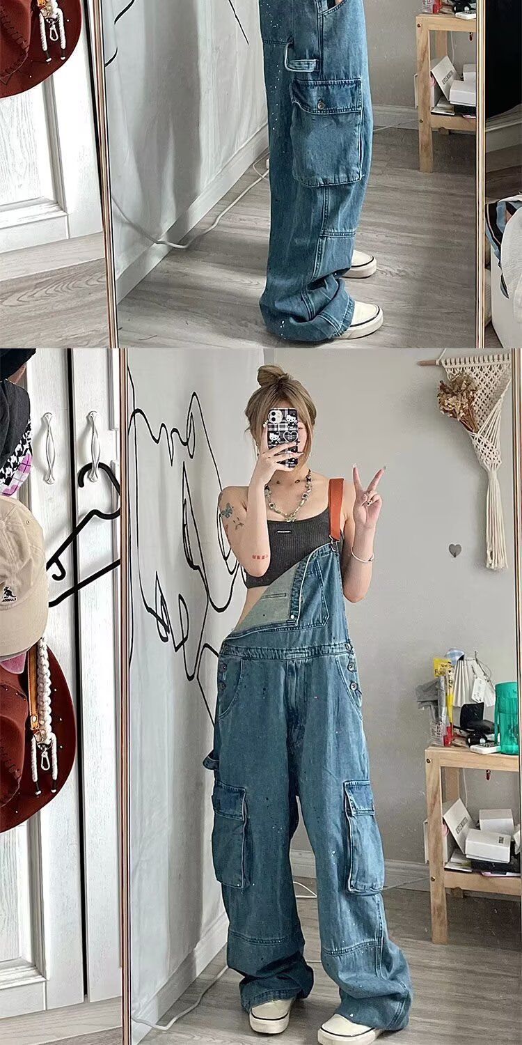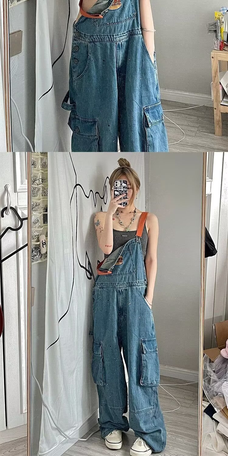 여름 여성용 아메리칸 레트로 데님 오버올, 슬림하고 달콤한 여름 작업복, 루즈한 와이드 레그 바닥 길이 바지, 배송스토어 가기