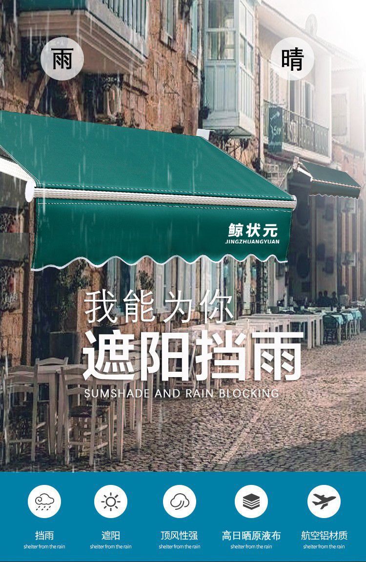 태양 그늘 야외 수축 접이식 개폐식 전기 핸드 크랭크 외관 태양 보호 및 비 차단 캐노피 안뜰 발코니 텐트