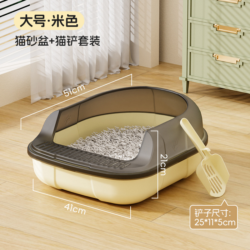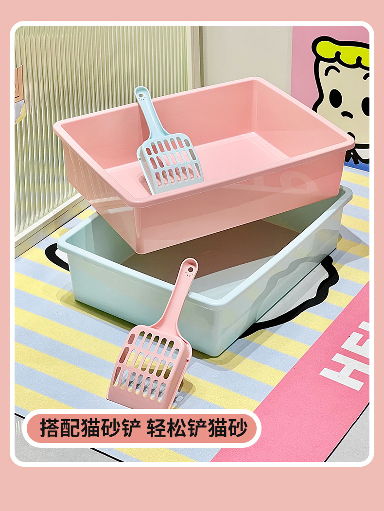 고양이 쓰레기 상자 대형 반 밀폐형 고양이 화장실 두꺼운 직사각형 고양이 쓰레기 상자 고양이 청소 고양이 배변 상자스토어 가기
