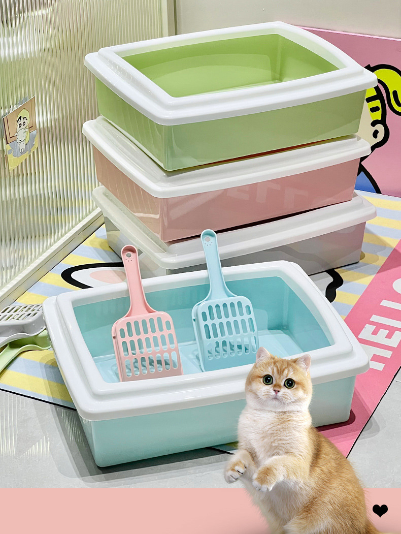 고양이 쓰레기 상자 대형 반 밀폐형 고양이 화장실 두꺼운 직사각형 고양이 쓰레기 상자 고양이 청소 고양이 배변 상자