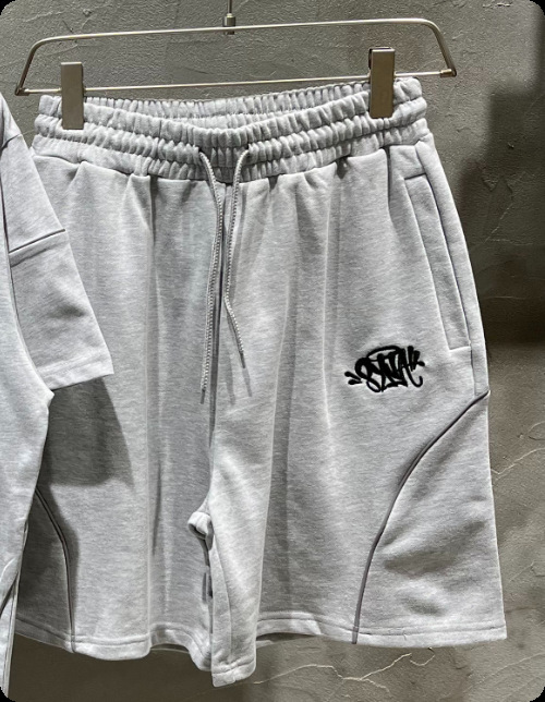 젊은 남성과 여성을 위한 새로운 미국 자수 로고 라인 반사 여름 틈새 패션 티셔츠 반바지 스포츠 슈트