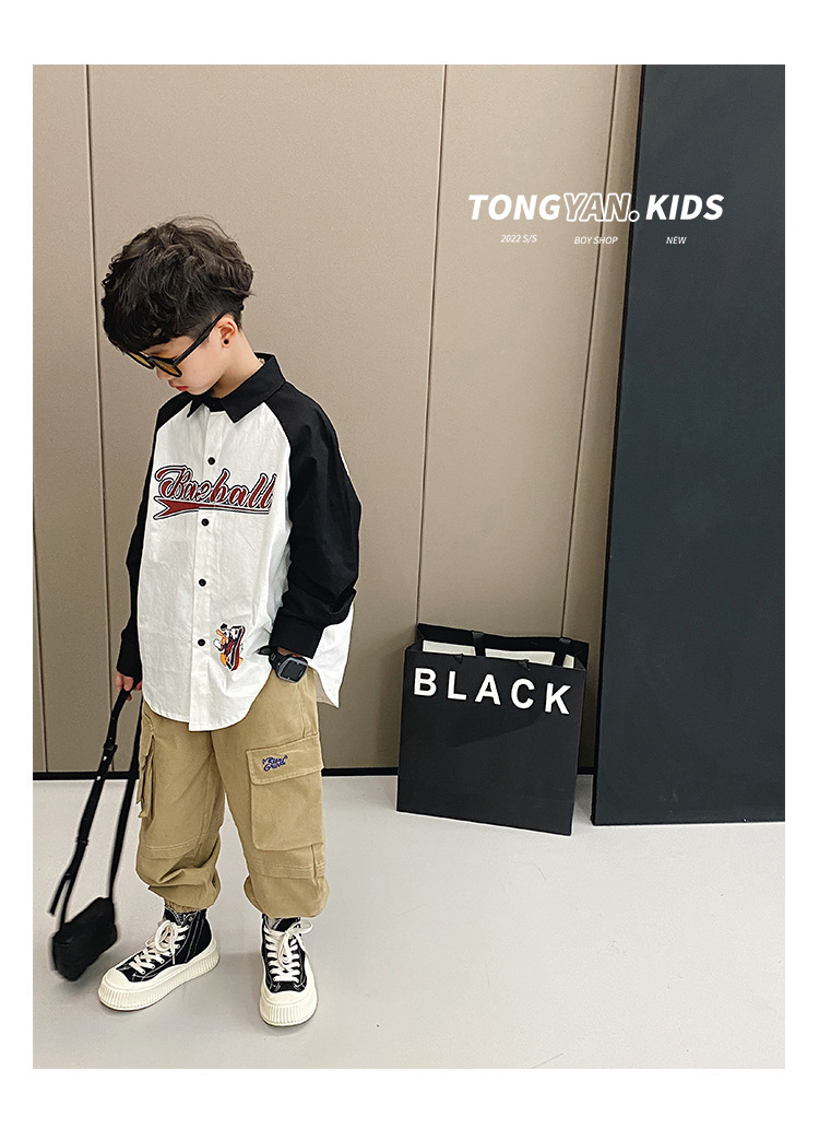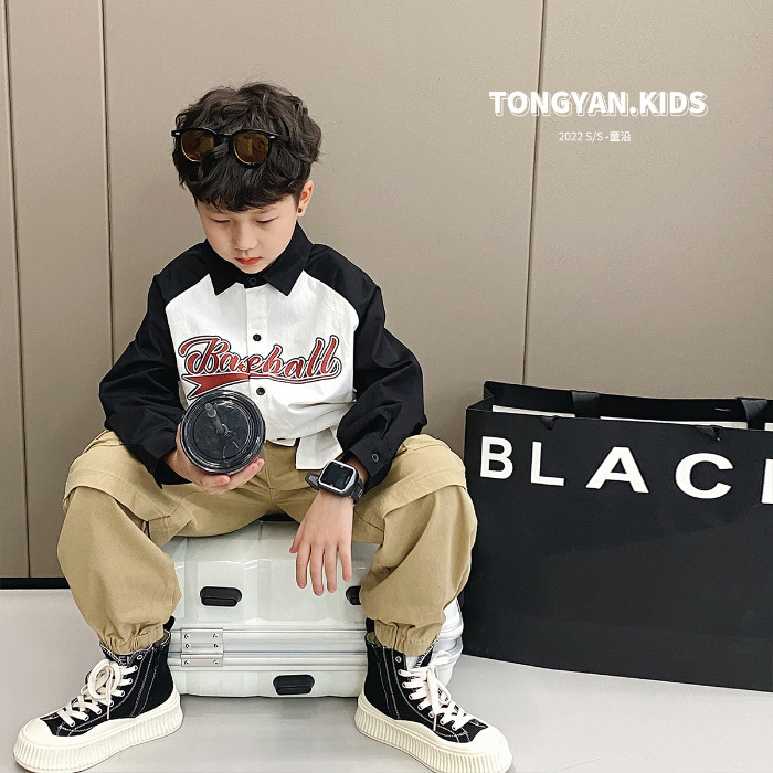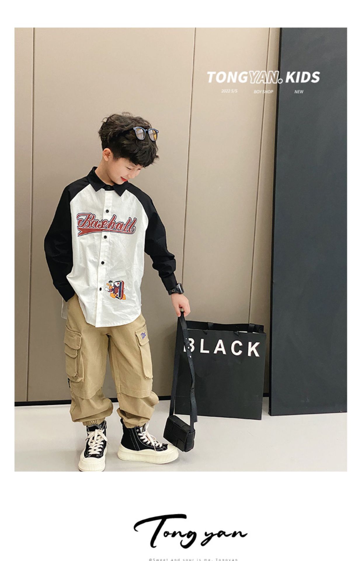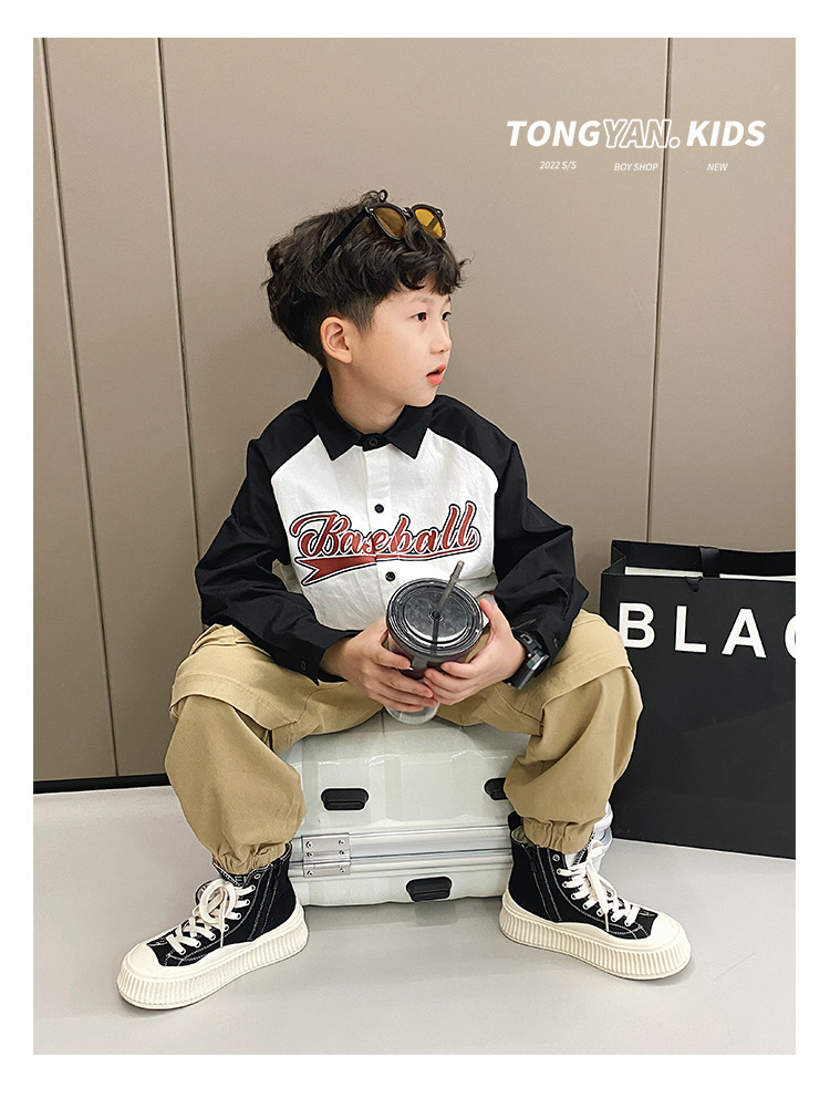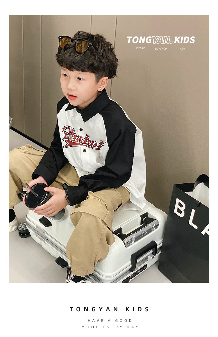 2024 봄, 가을 새로운 스타일 소년 대학 스타일 한국 스타일 긴팔 소년 컬러 블록 셔츠 봄 어린이 스타일 셔츠 유행스토어 가기