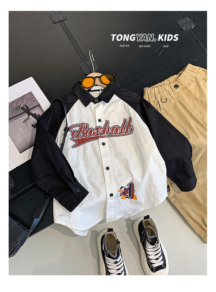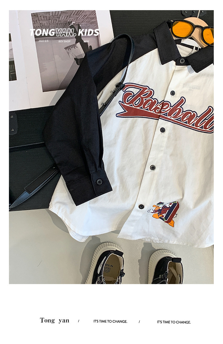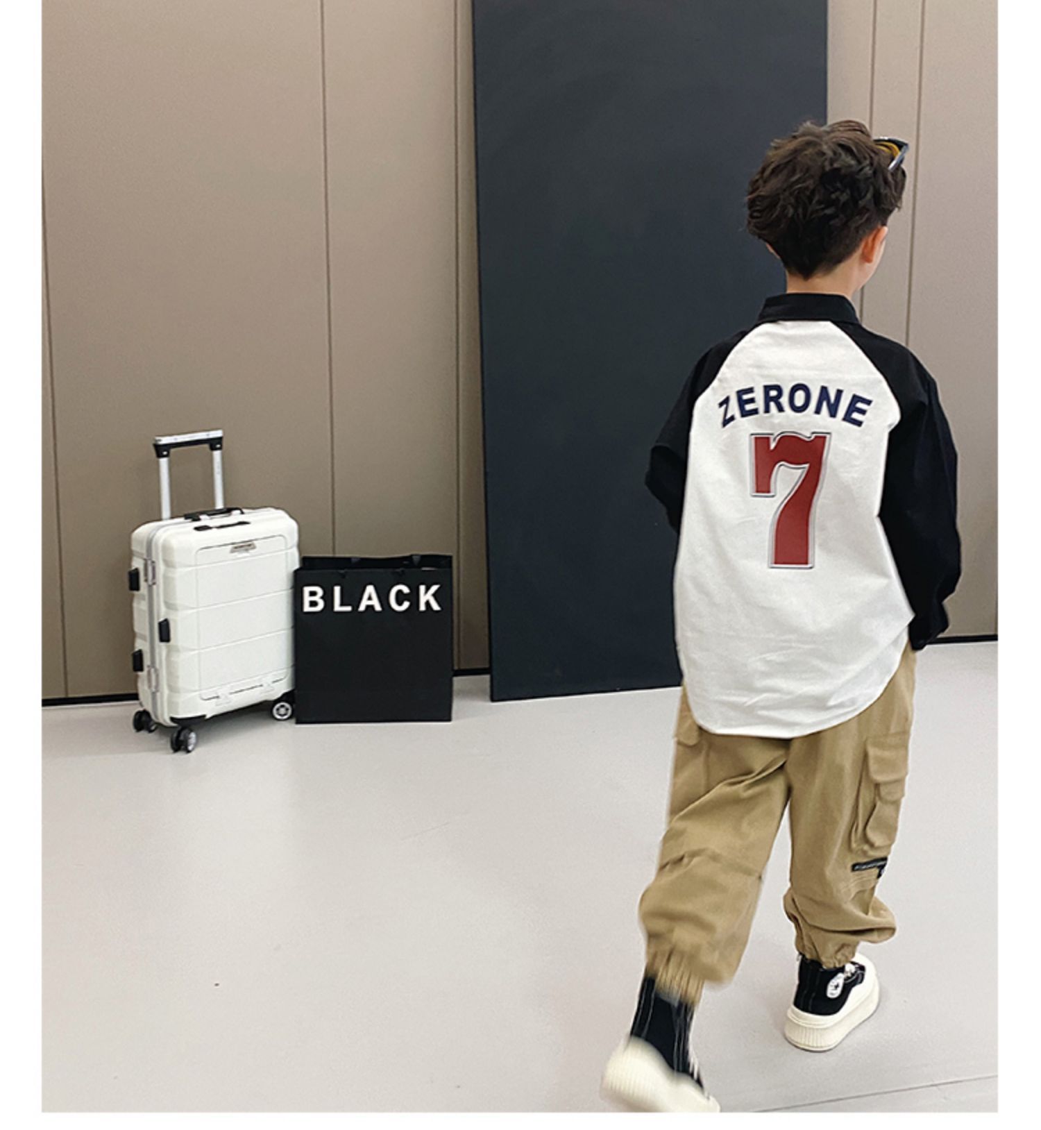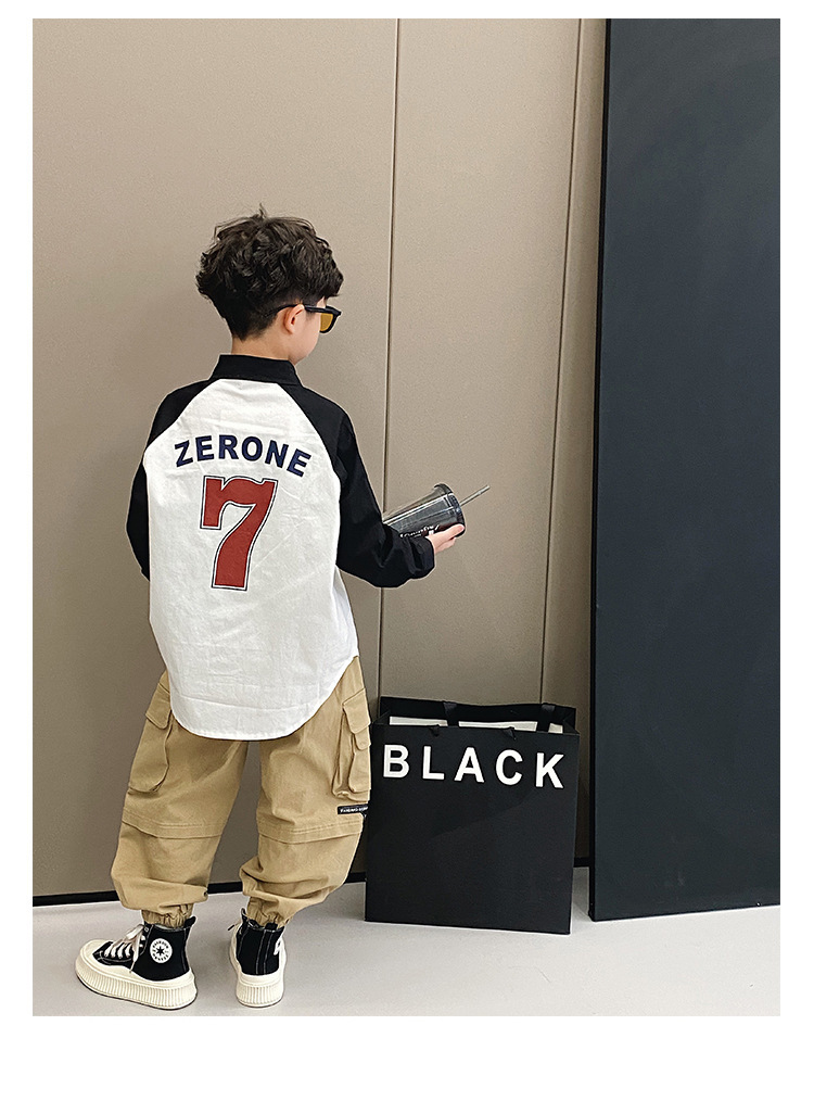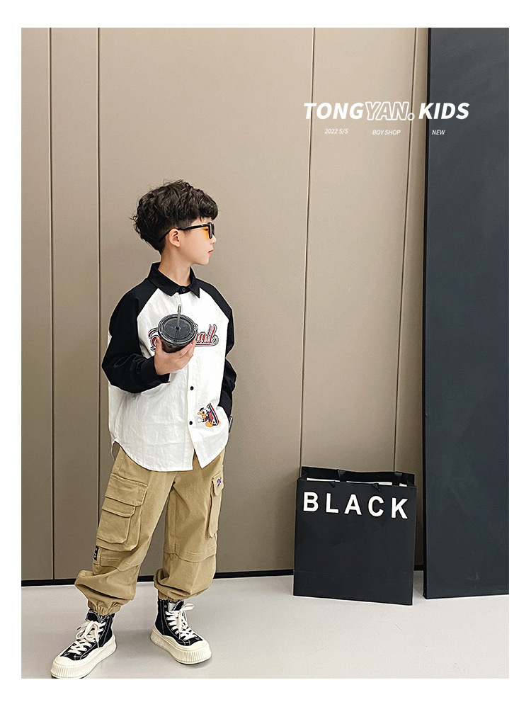 2024 봄, 가을 새로운 스타일 소년 대학 스타일 한국 스타일 긴팔 소년 컬러 블록 셔츠 봄 어린이 스타일 셔츠 유행스토어 가기