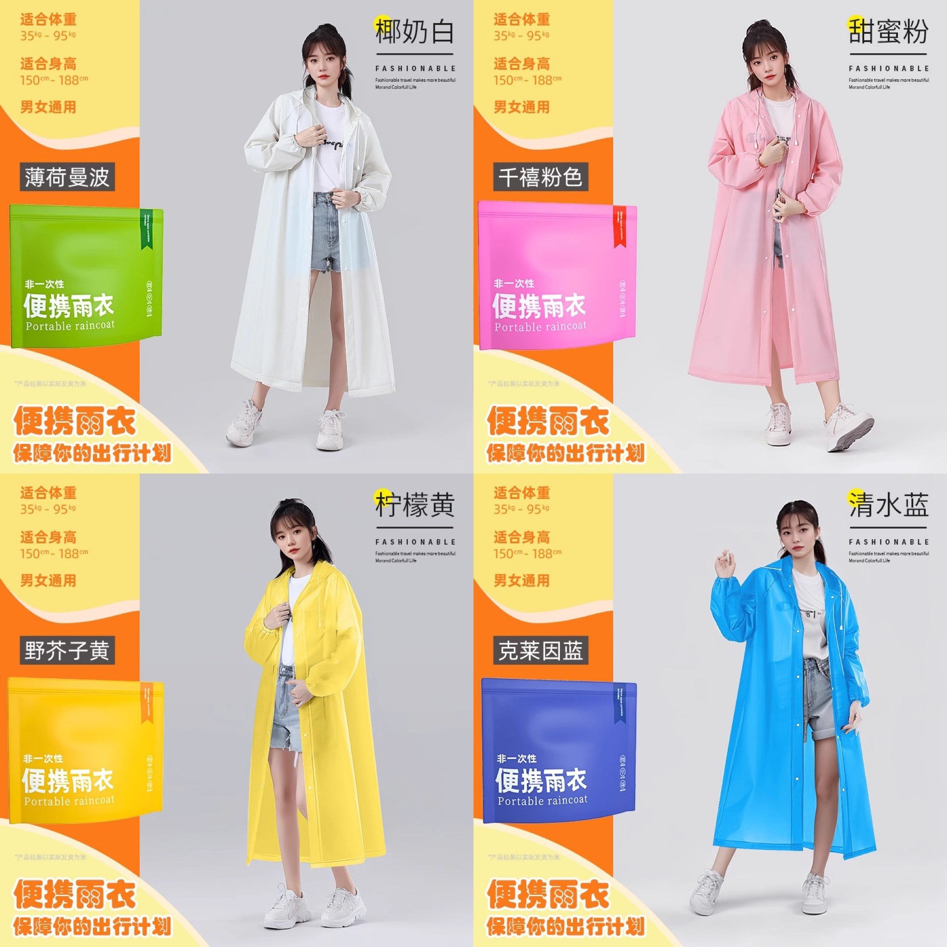 일회용이 아닌 비옷 세련된 EVA 성인 및 어린이 야외 여행 휴대용 두꺼운 긴 투명 원피스 비옷