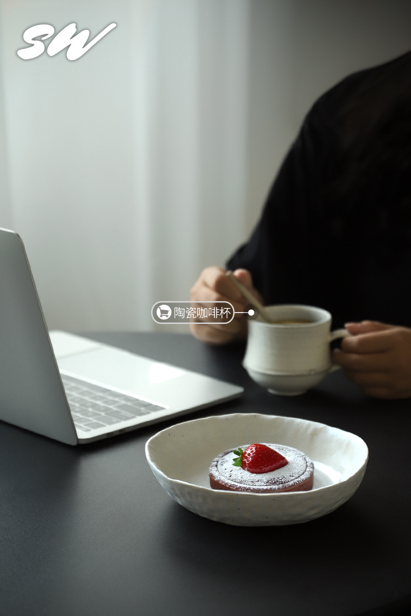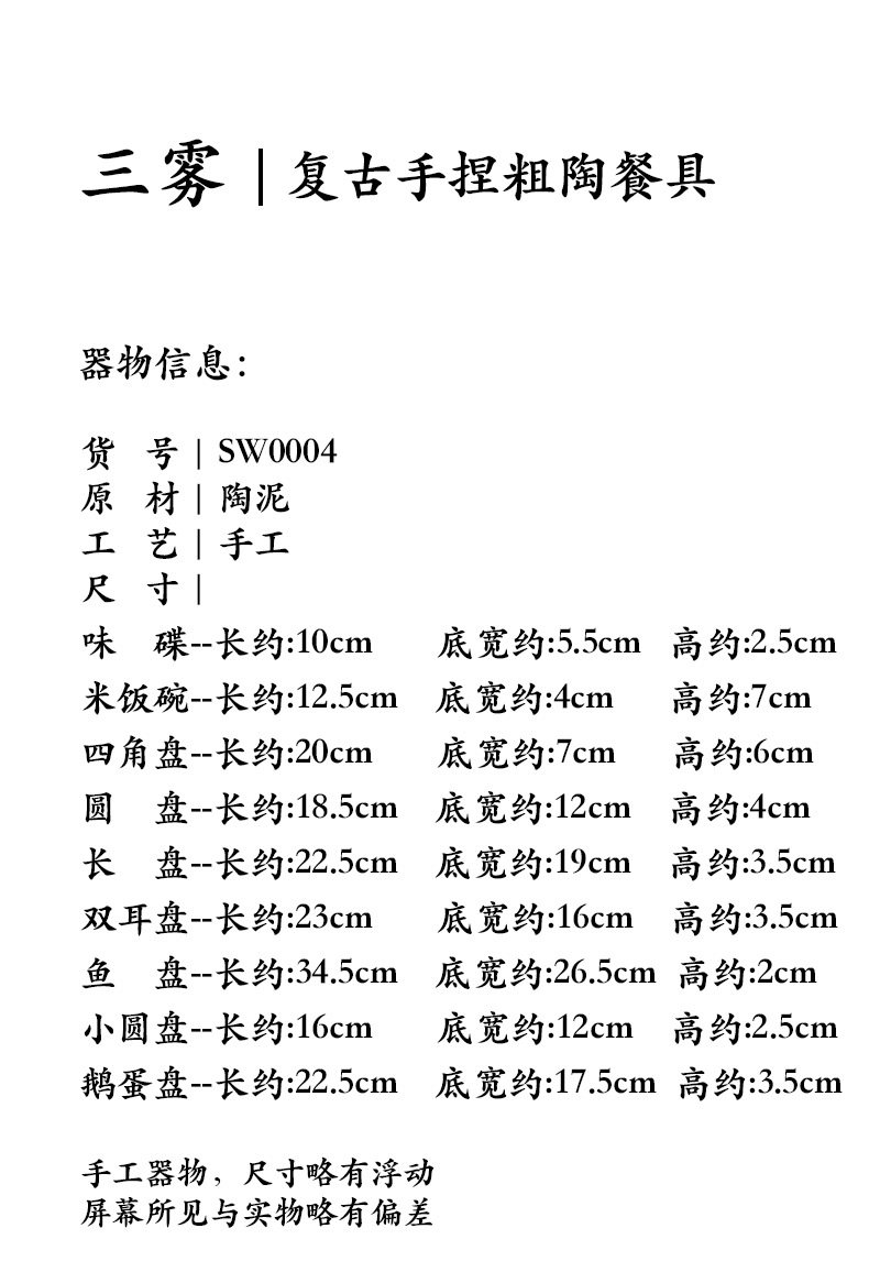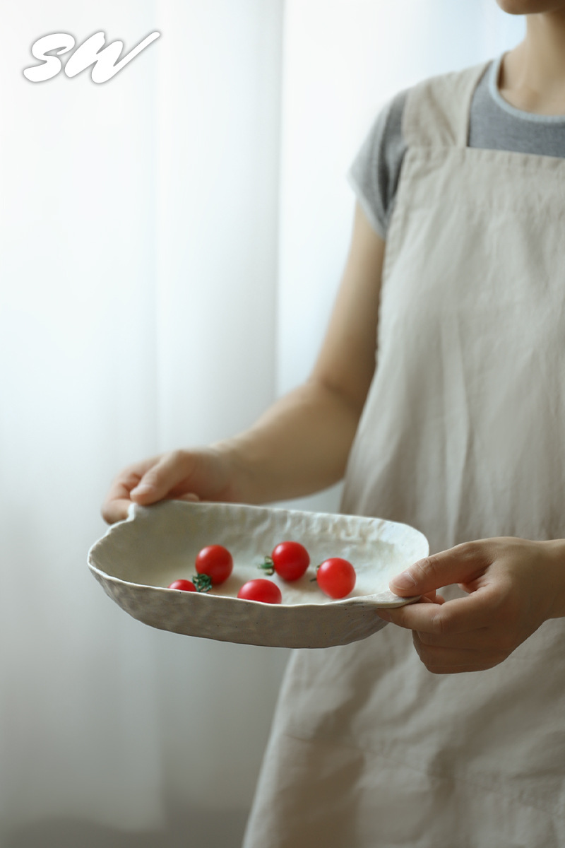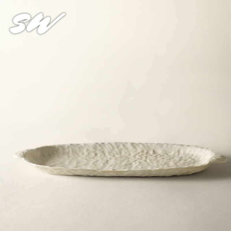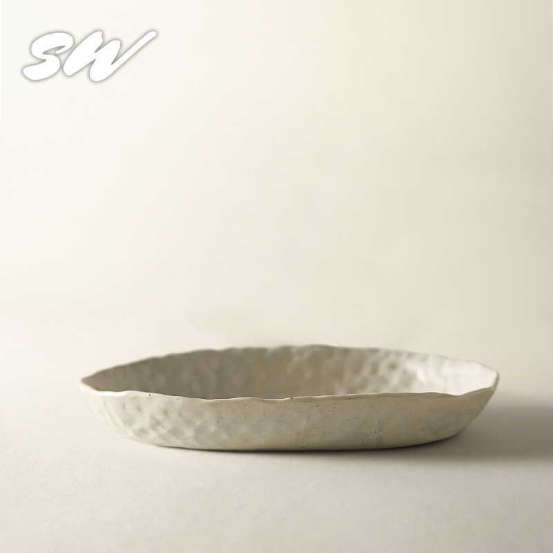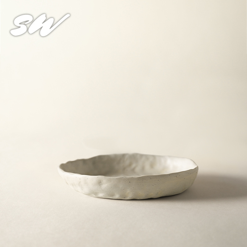 Sanwu 복고풍 손으로 짜낸 거친 도자기 식기 불규칙한 그릇과 접시 맞춤형 디너 접시 일본식 생선 접시 샐러드 접시 양각 접시스토어 가기