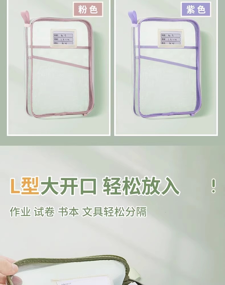 파일 가방 L자형 대형 개방형 학생 시험지 분류 접이식 보관 가방 두꺼운 대용량 도서 핸드백