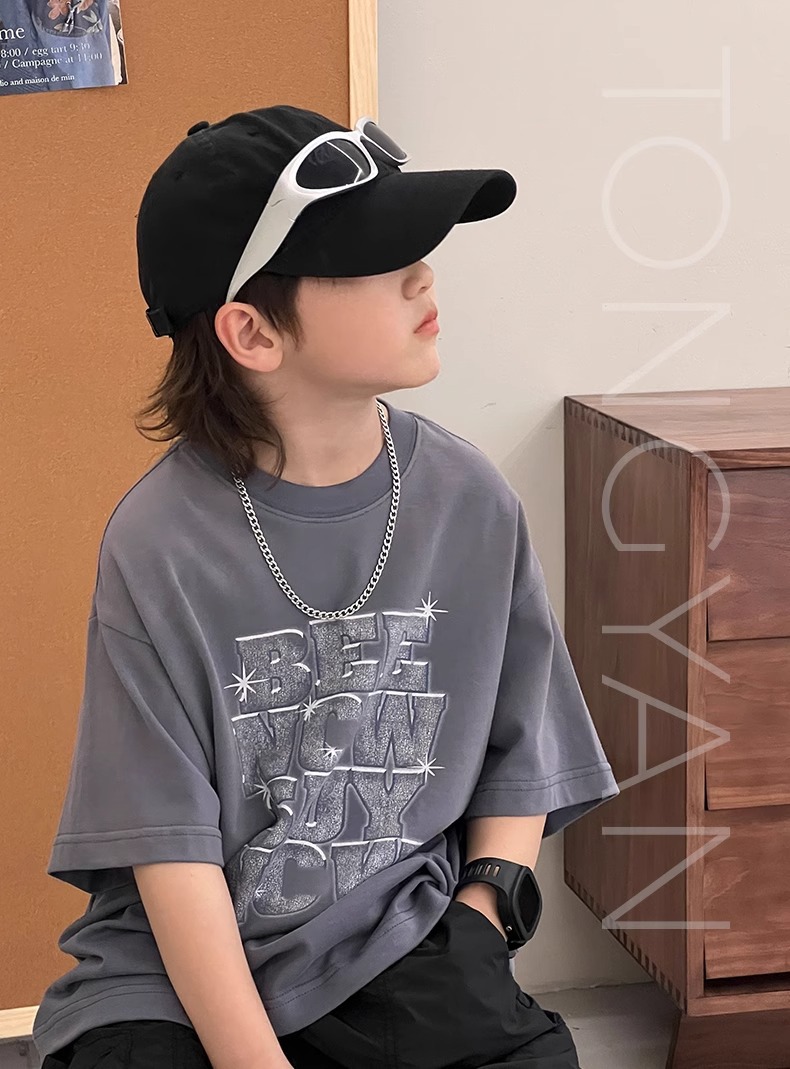 남아용 반팔 티셔츠 2025 여름 신작 중대형 아동용 반팔 한국식 티셔츠, 패셔너블하고 다재다능한 아동용 상의, 얇은 스타일스토어 가기