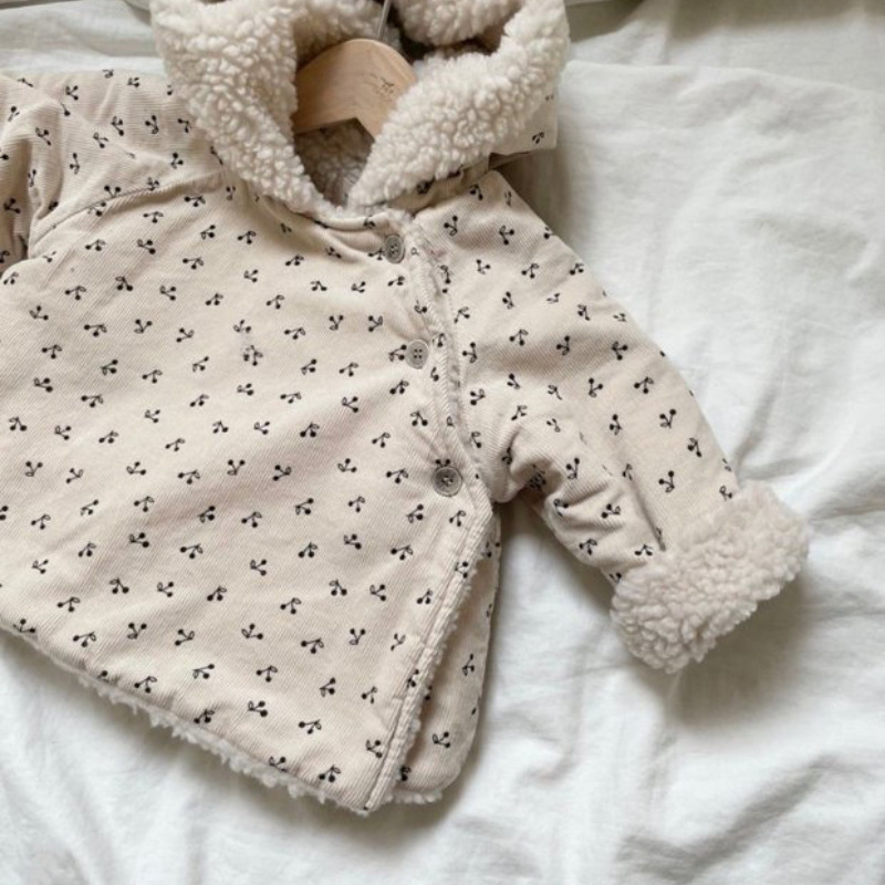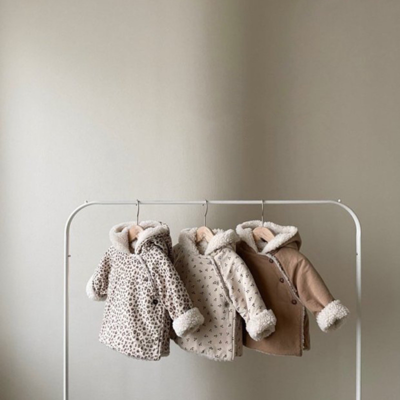 여아 겨울 신상 플리스 자켓 한국 스타일 인스 남녀 공용 양털 두꺼운 플리스 꽃무늬 후드 가디건