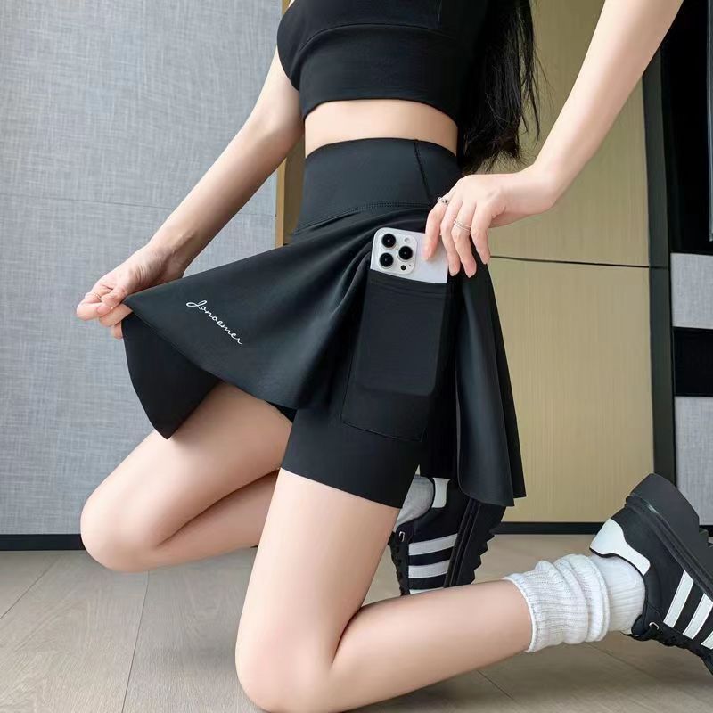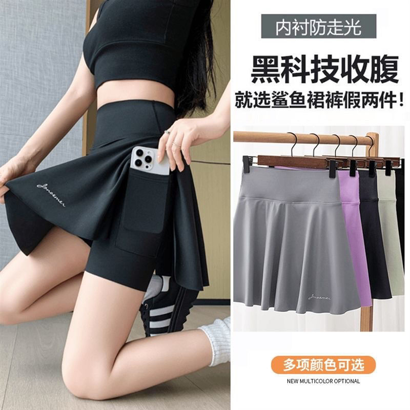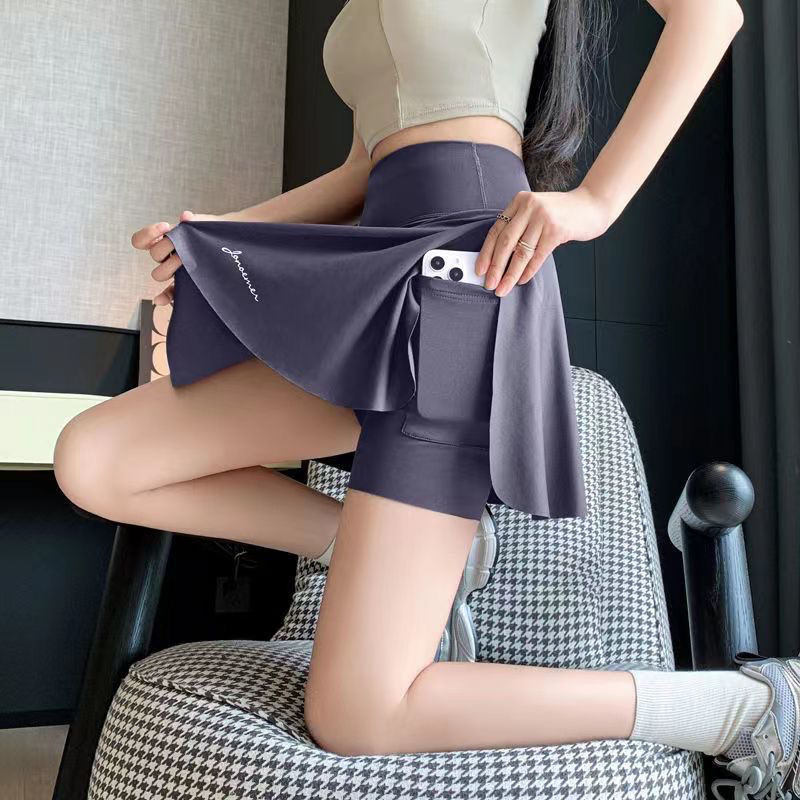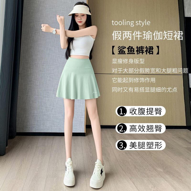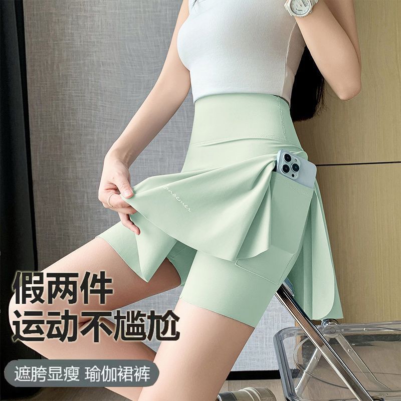 플러스 사이즈, 속건성, 노출 방지, 페이크 투피스 스커트, 뚱뚱한 mm 스포츠 피트니스 요가복, 런닝 반바지 스커트스토어 가기