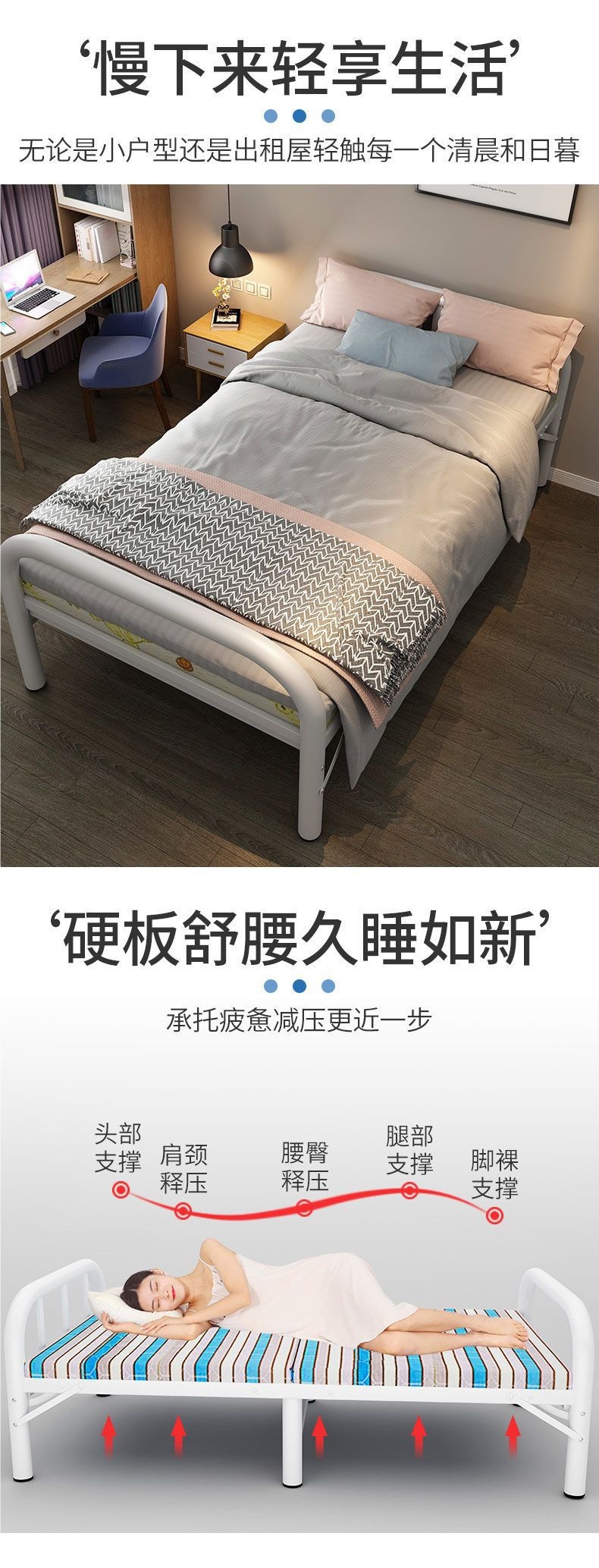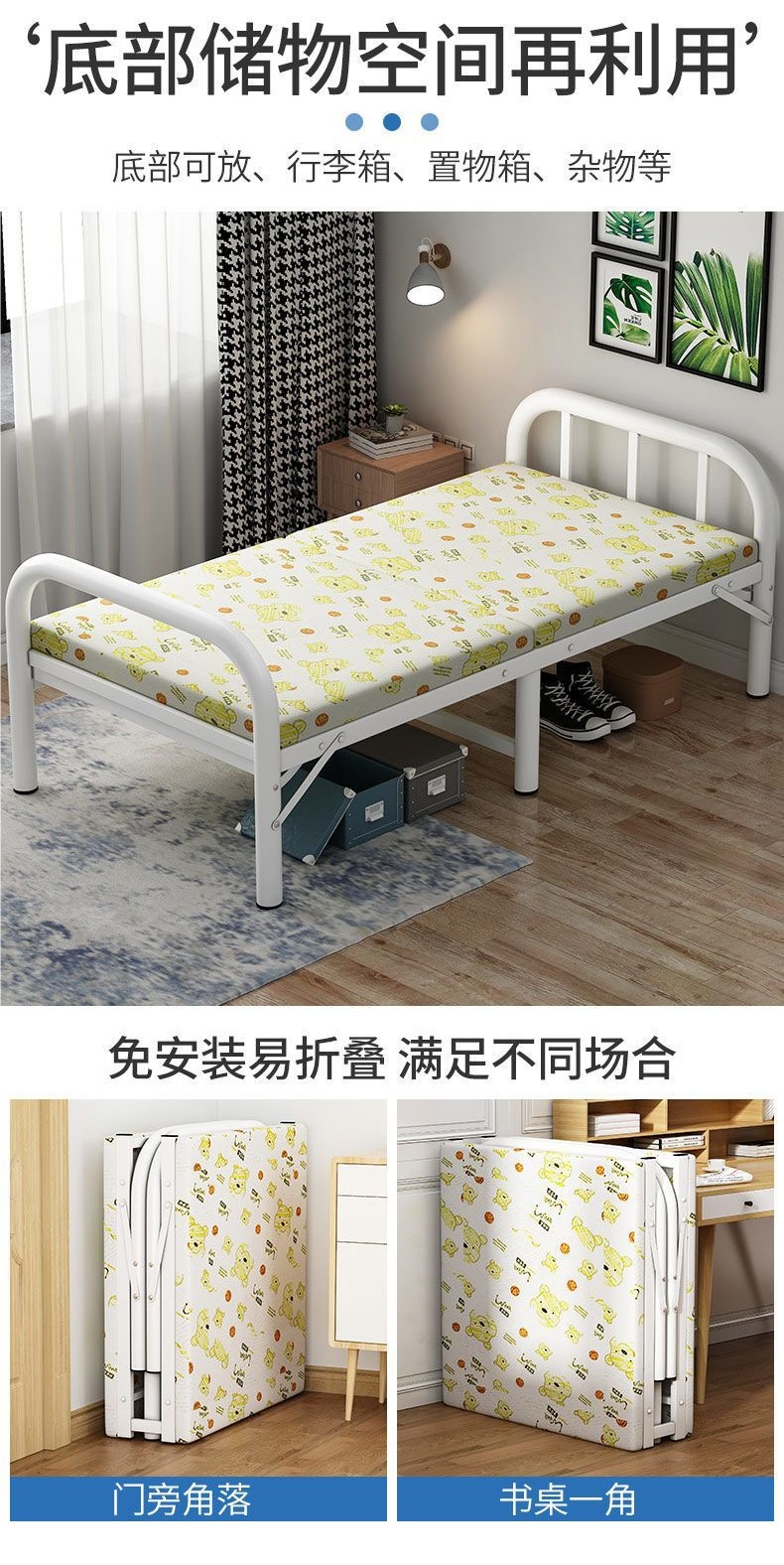 성인과 어린이를 위한 싱글 침대용 접이식 침대 철제 침대 가정용 휴대용 사무실 임대 주택 점심 시간 침대 단단한 침대스토어 가기