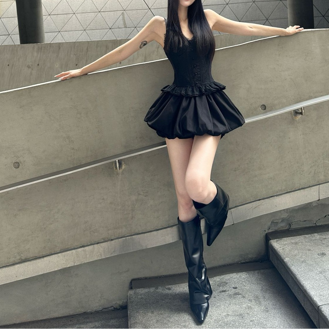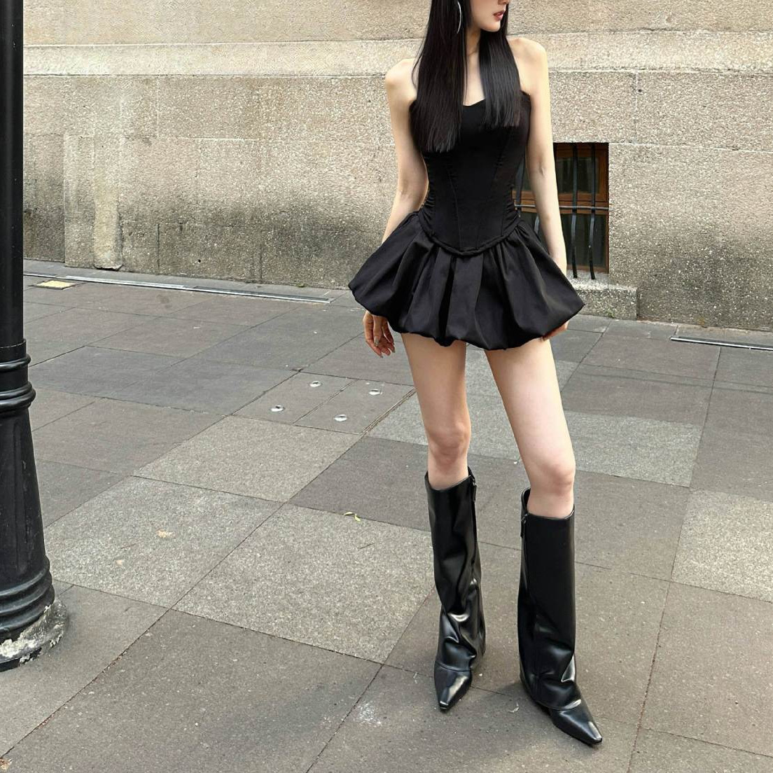 여성용 A라인 버드 스커트, 로우 웨이스트, 슬리밍 핫걸 스커트, 스커트, 블랙, 화이트, 기타