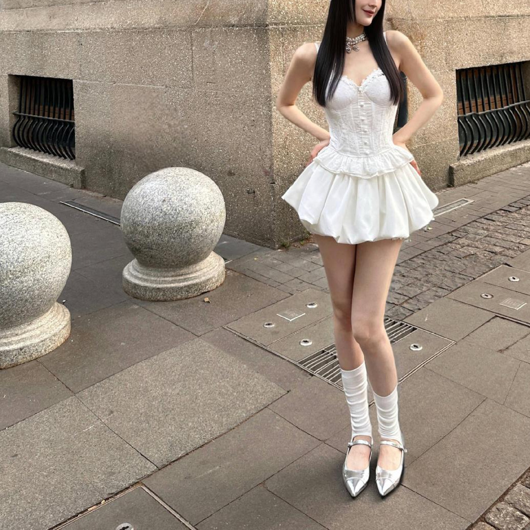 여성용 A라인 버드 스커트, 로우 웨이스트, 슬리밍 핫걸 스커트, 스커트, 블랙, 화이트, 기타스토어 가기