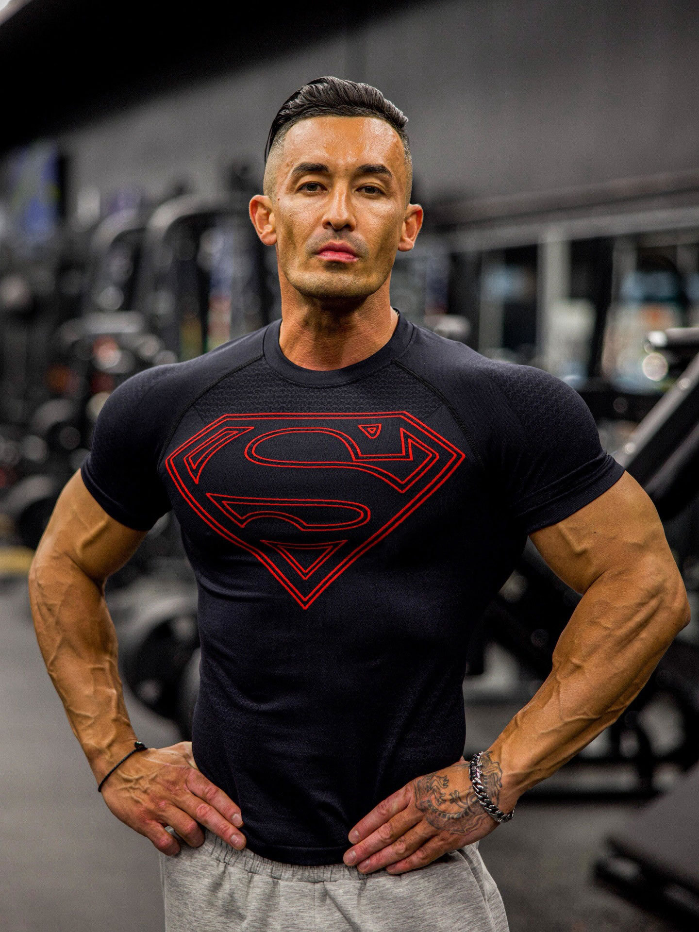 YOUNGLA 새로운 미국 근육 피트니스 남성 스포츠 반팔 캐주얼 러닝 속건성 통기성 타이츠 티셔츠