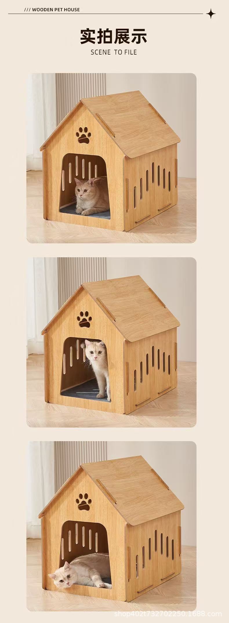 사계절 간이 개집, 하우스형 소형견 개집, 고양이 개집, 야외용 두꺼운 나무 고양이 개집스토어 가기