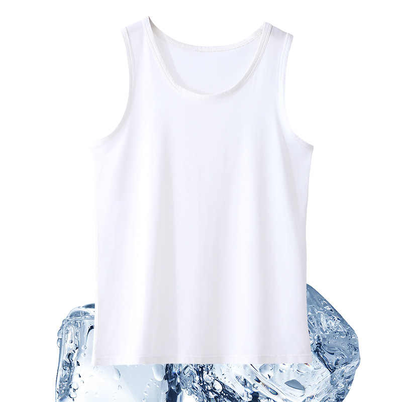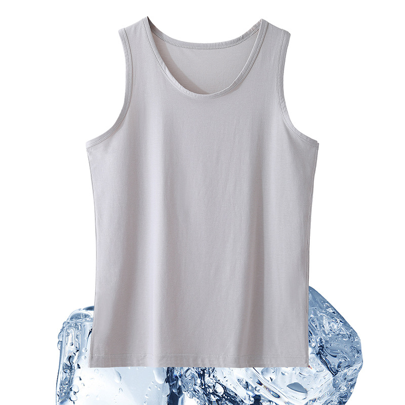 Lyocell 조끼 남성 여름 텐셀 민소매 티셔츠 얇은 피트니스 스포츠 조끼 탑 허들 바닥 셔츠