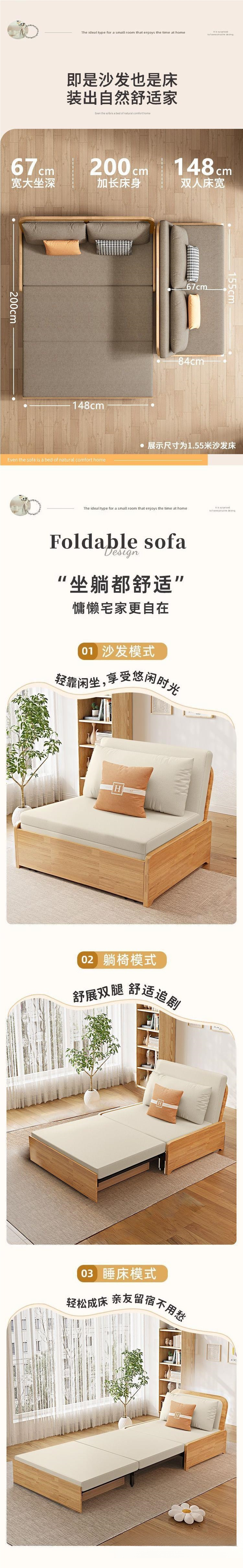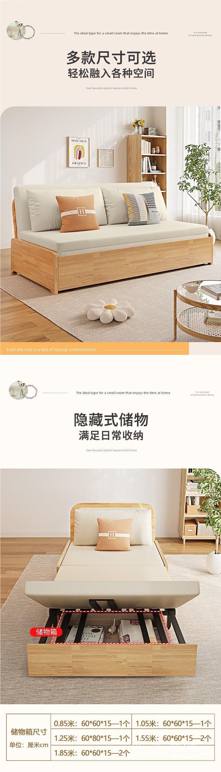 팔걸이가 없는 원목 소파 베드, 다기능 접이식 이중 목적 기술 천 싱글 및 더블 발코니 로그 스타일 텔레스코픽 침대스토어 가기