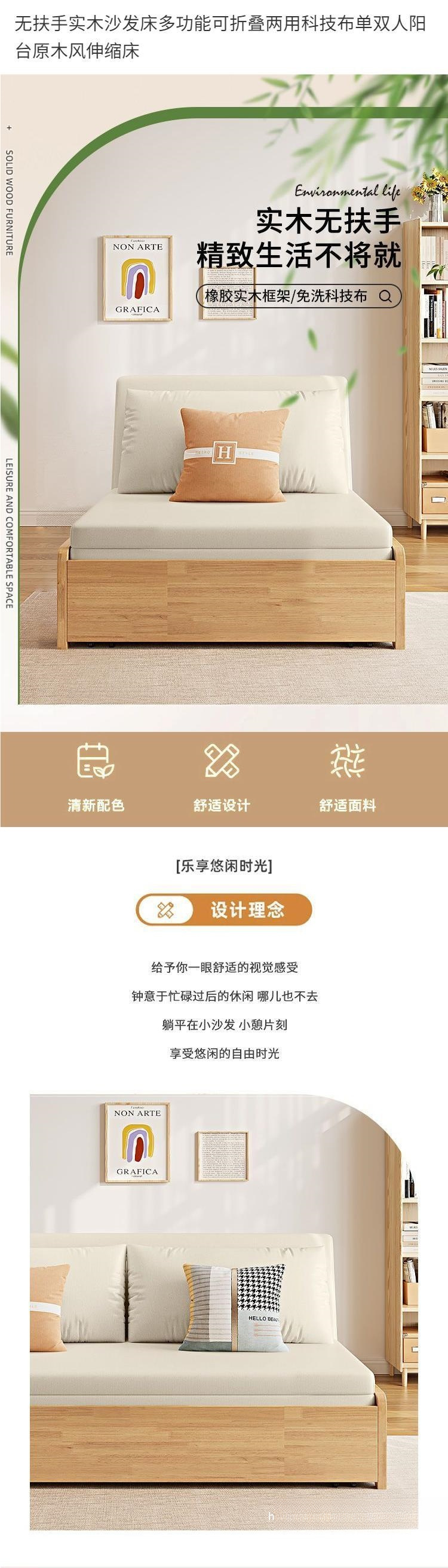 팔걸이가 없는 원목 소파 베드, 다기능 접이식 이중 목적 기술 천 싱글 및 더블 발코니 로그 스타일 텔레스코픽 침대