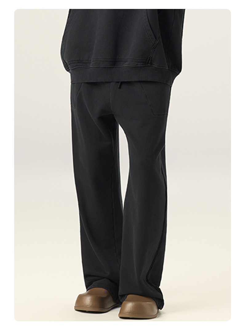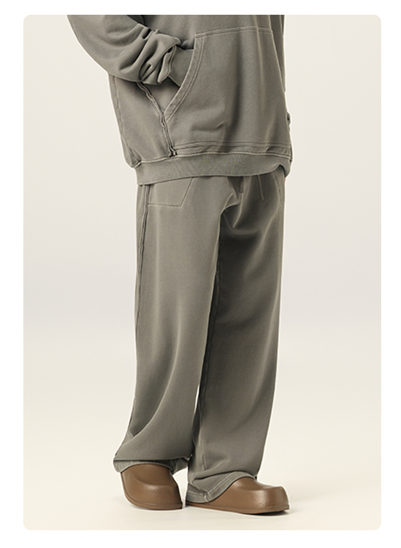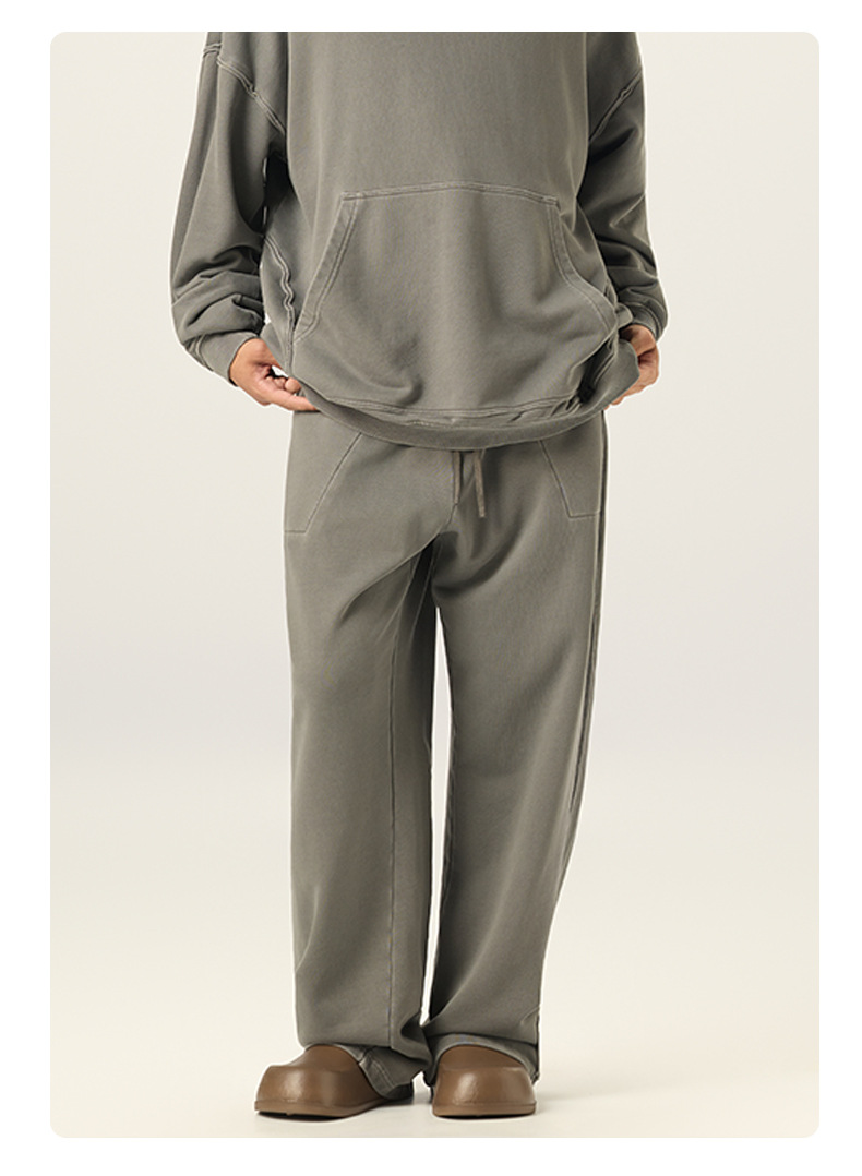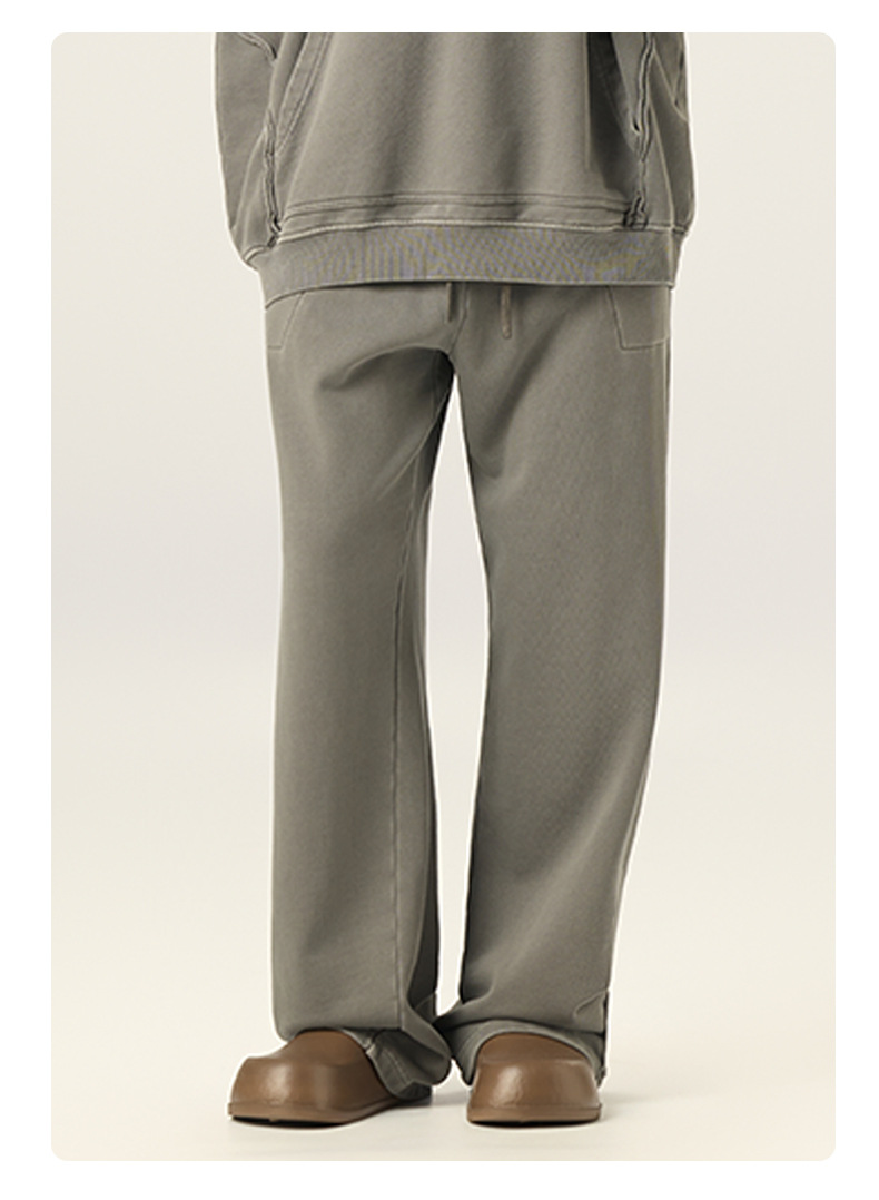 RS 남성복 | 크로스보더 워싱 420G 헤비급 순면 테리 스웨트팬츠 포그 아메리칸 드로스트링 남성용 와이드 레그 캐주얼 바지