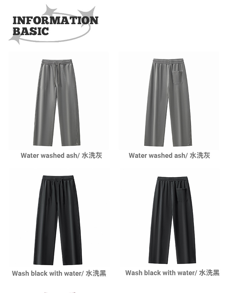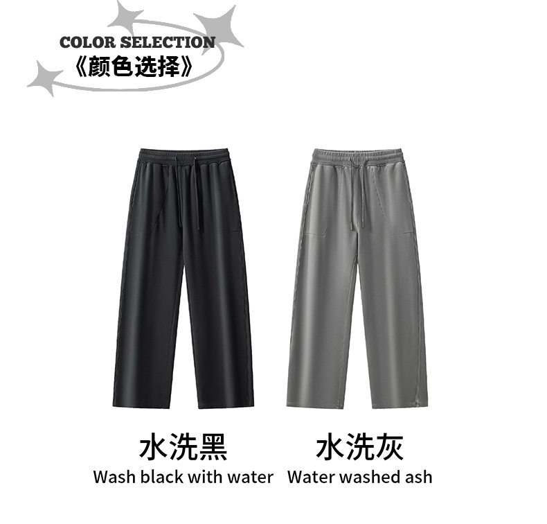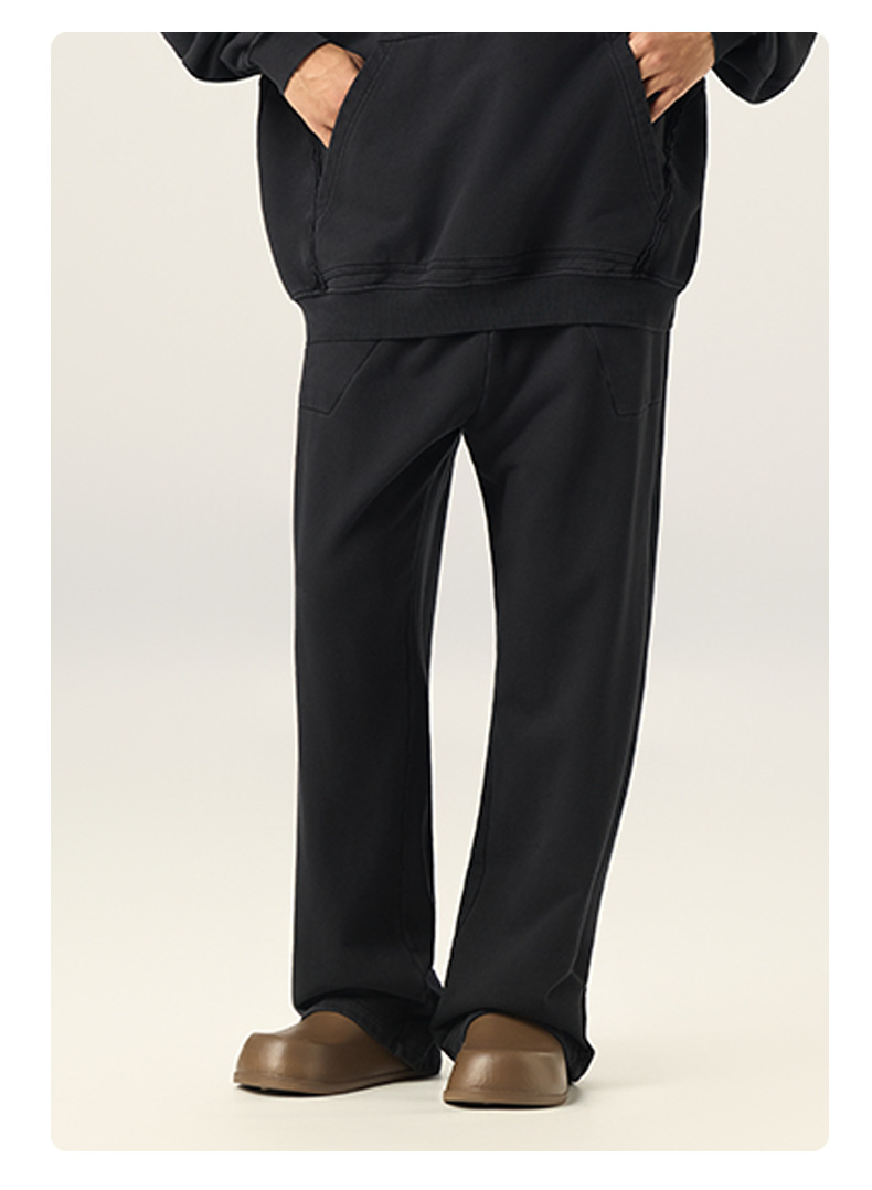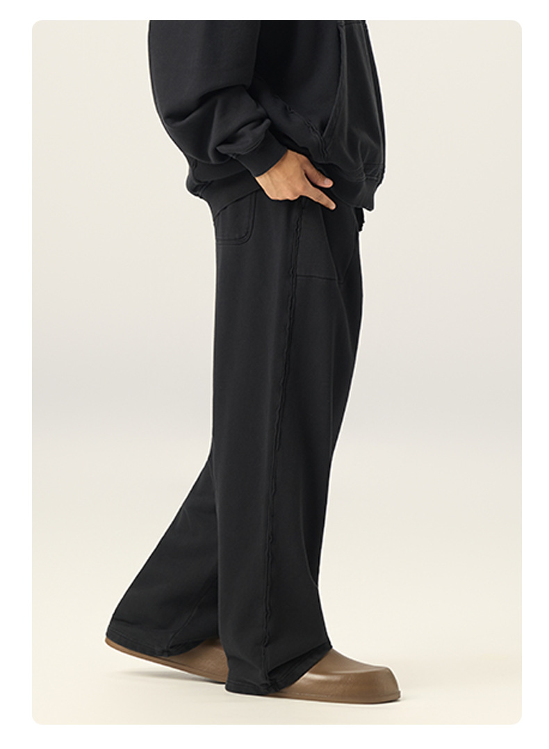 RS 남성복 | 크로스보더 워싱 420G 헤비급 순면 테리 스웨트팬츠 포그 아메리칸 드로스트링 남성용 와이드 레그 캐주얼 바지