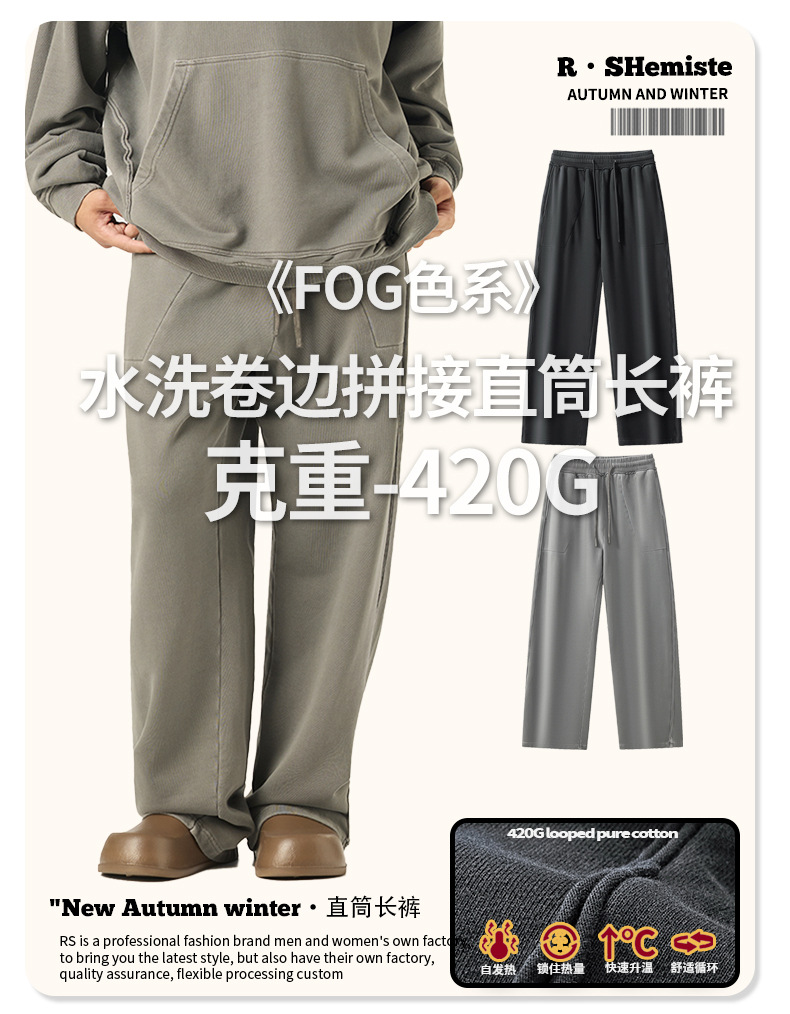 RS 남성복 | 크로스보더 워싱 420G 헤비급 순면 테리 스웨트팬츠 포그 아메리칸 드로스트링 남성용 와이드 레그 캐주얼 바지스토어 가기