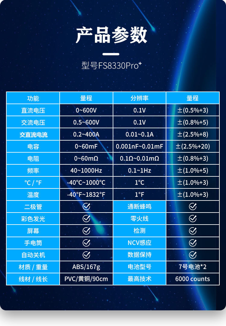 • 다기능 클램프 멀티미터 FS8330Pro-표준 구성 + 보관 가방 + 충전 세트