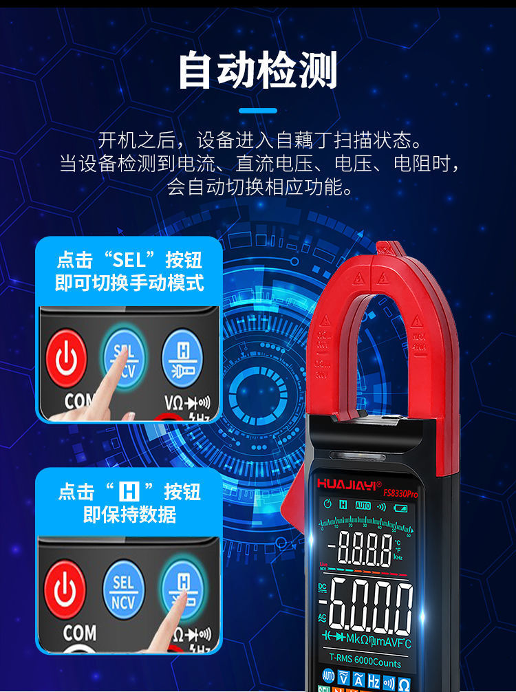 새로운 대형 스크린 다기능 클램프 멀티 미터 디지털 고정밀 완전 자동 전압 및 전류 측정기 지능형 화상 방지스토어 가기