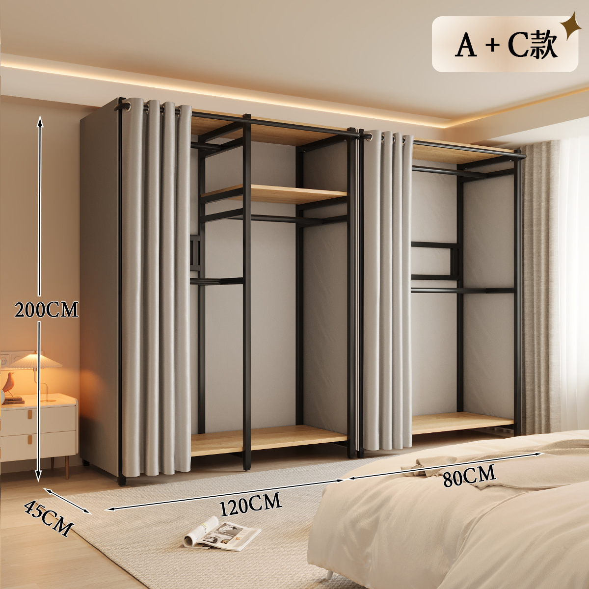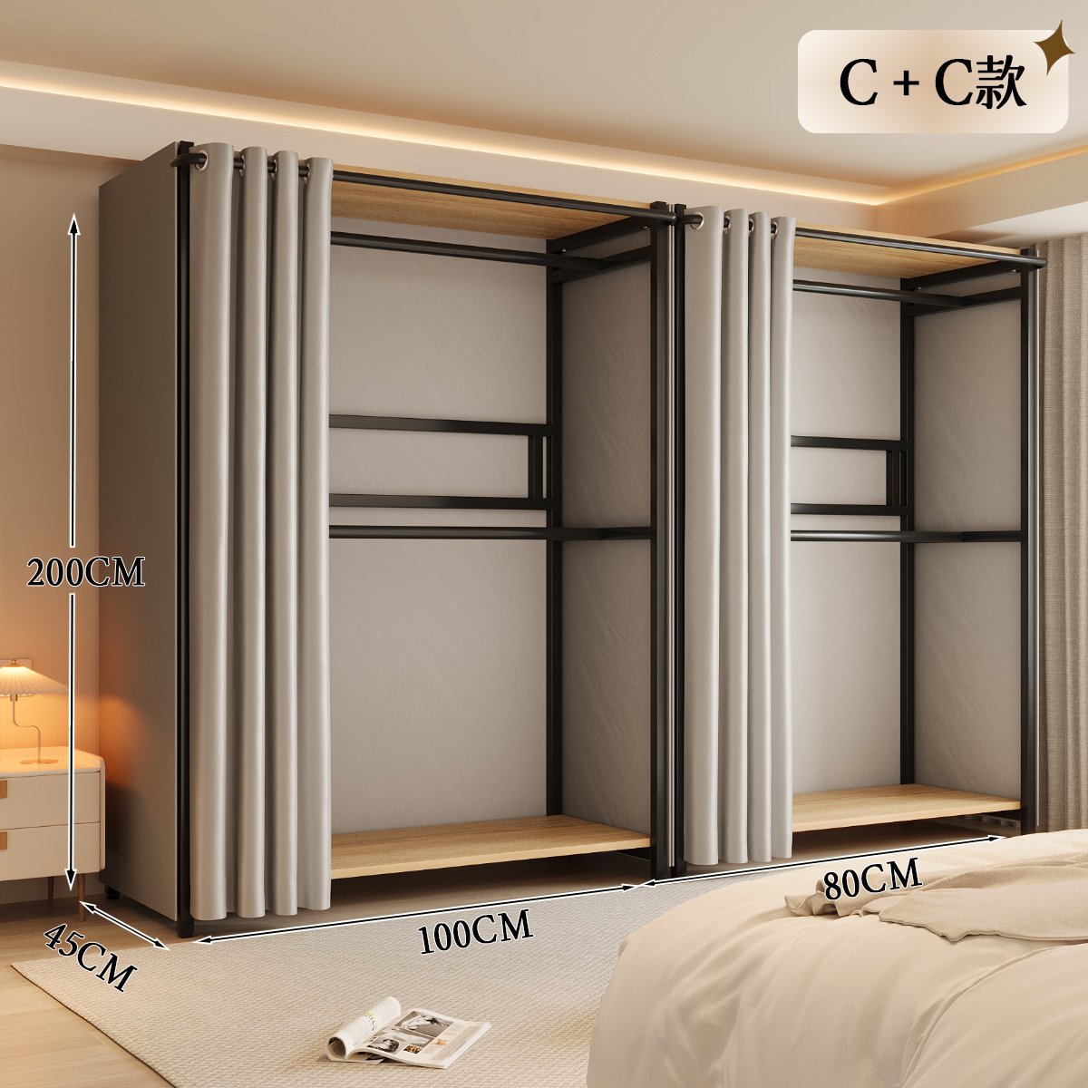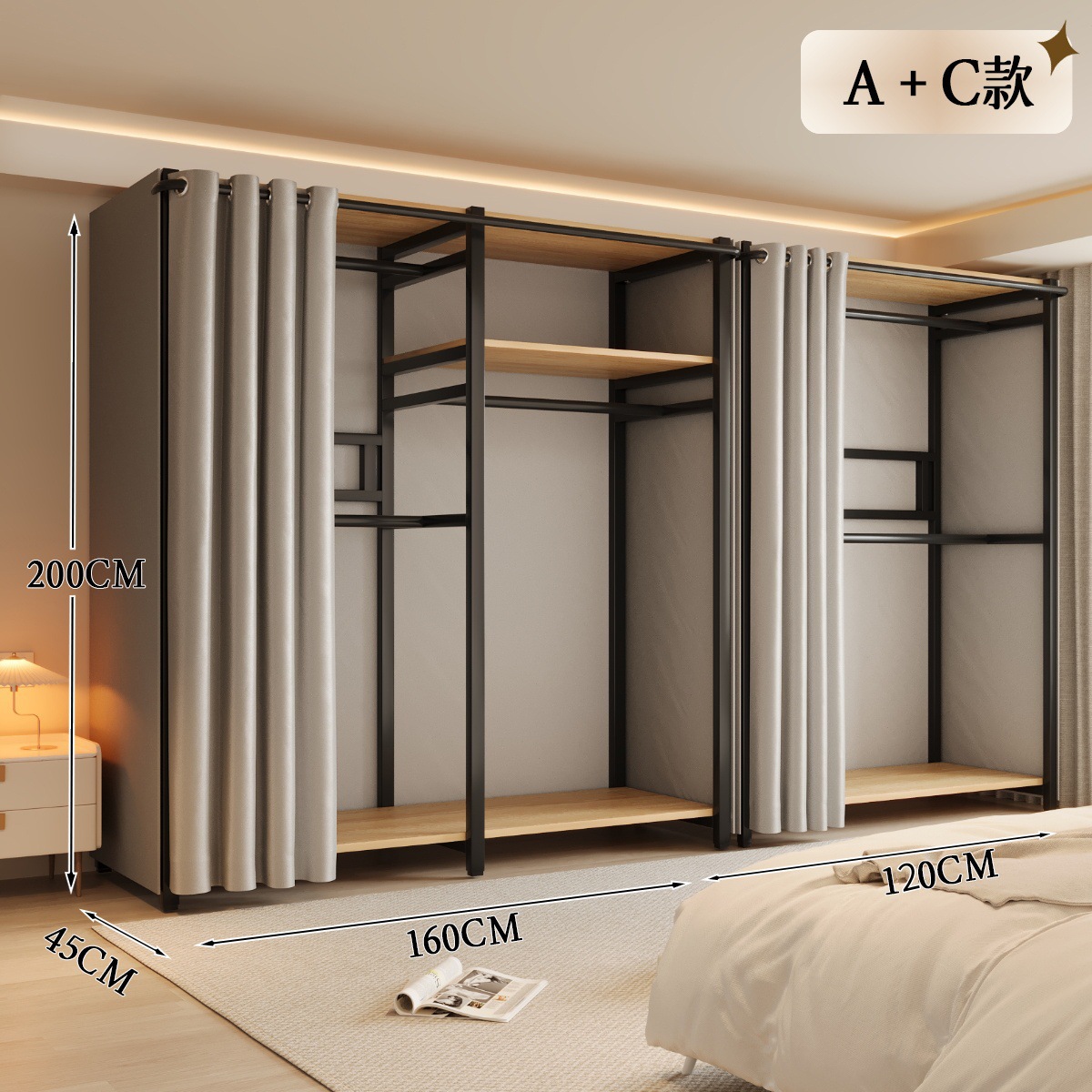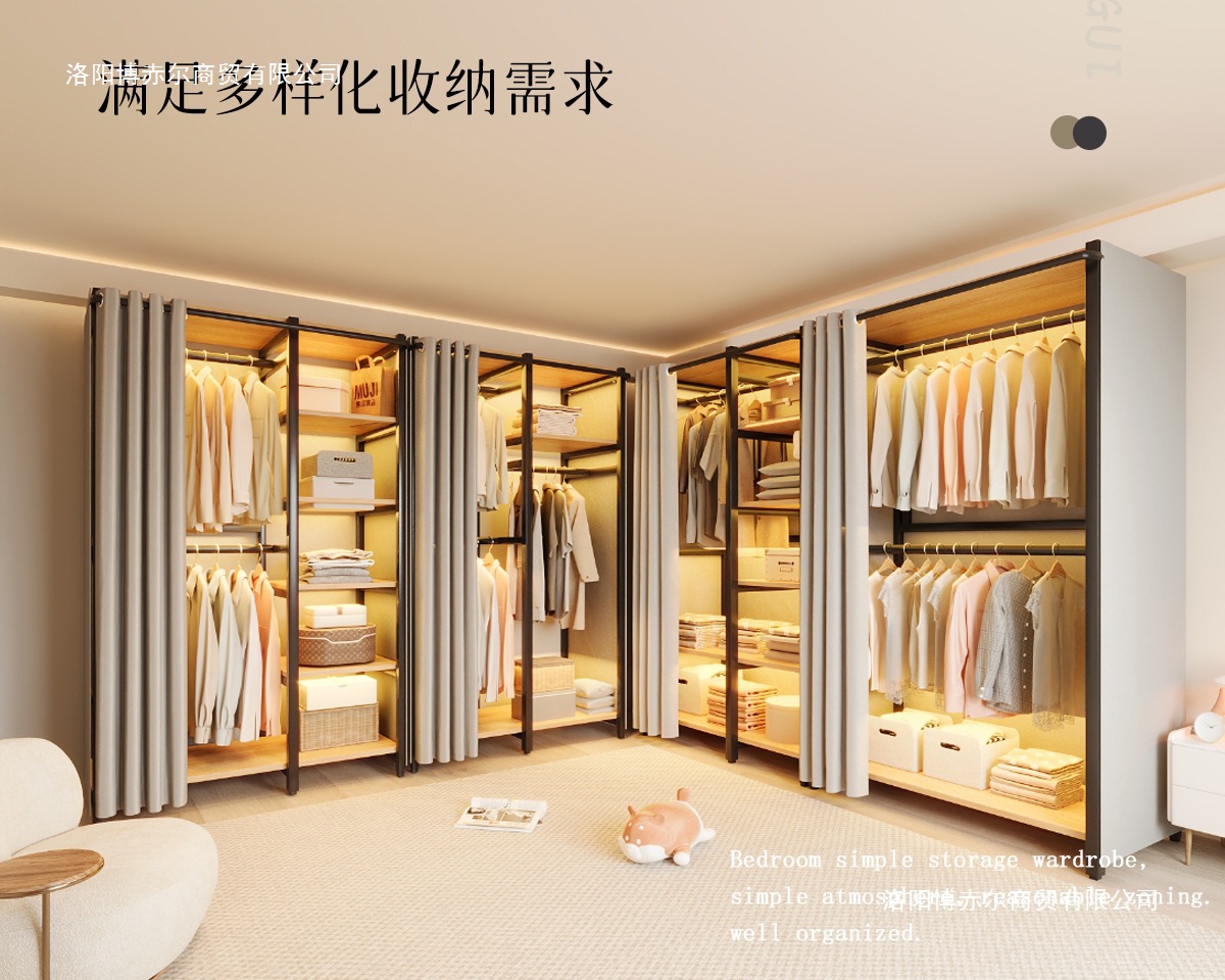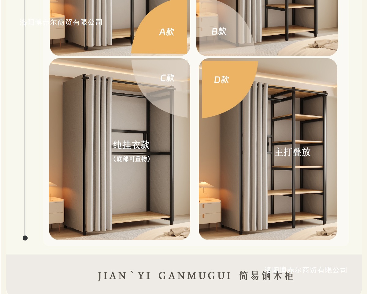 옷장 일체형 침실 홈 타입 옷장 간단한 조립 금속 옷장 두꺼운 강철 프레임