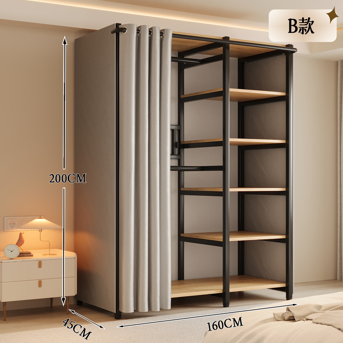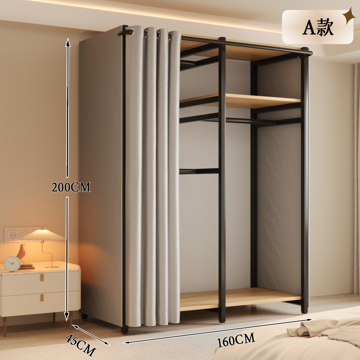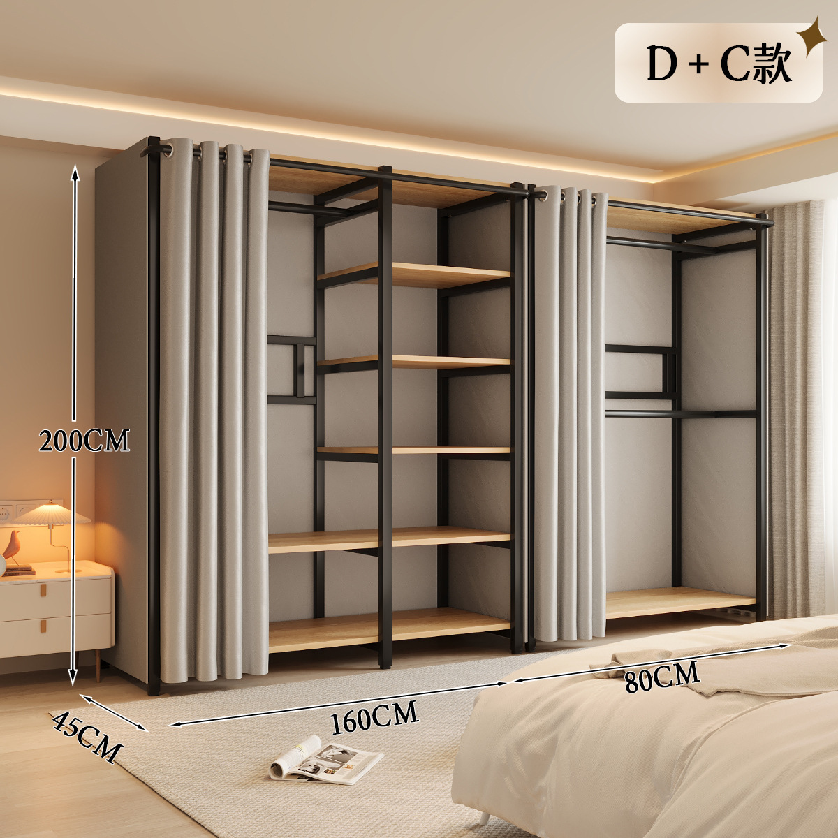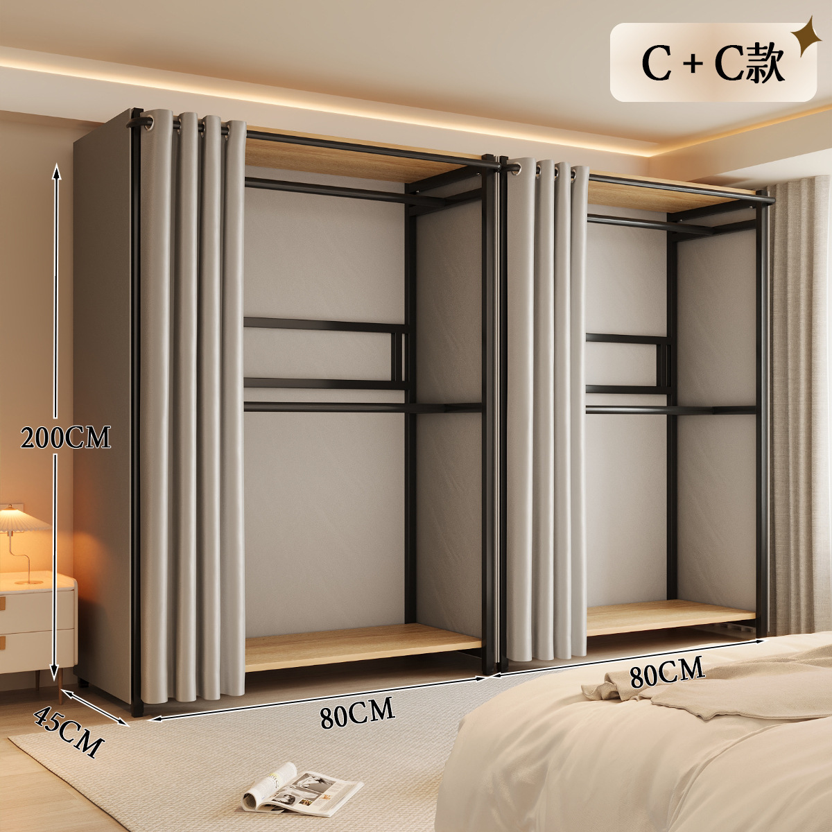 옷장 일체형 침실 홈 타입 옷장 간단한 조립 금속 옷장 두꺼운 강철 프레임
