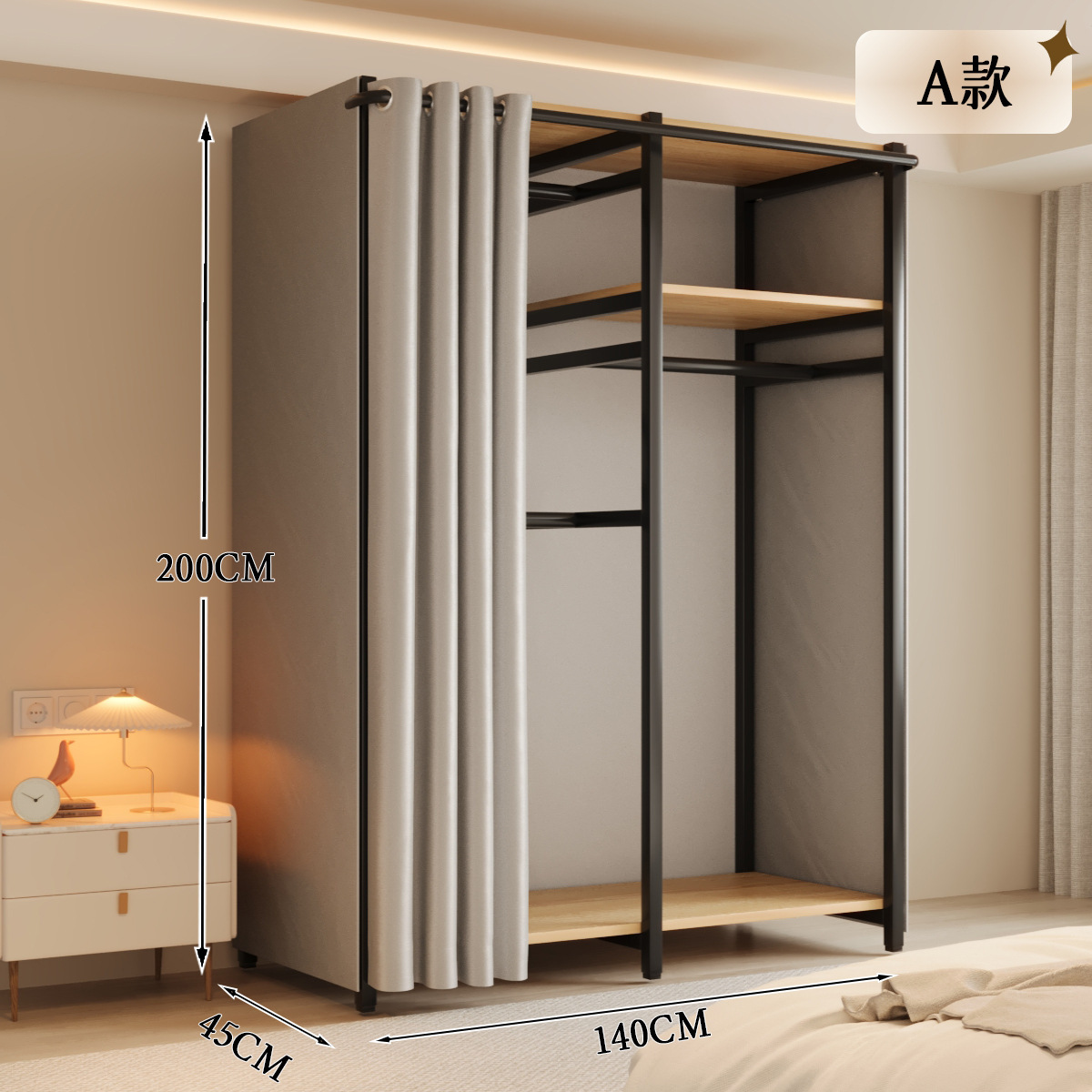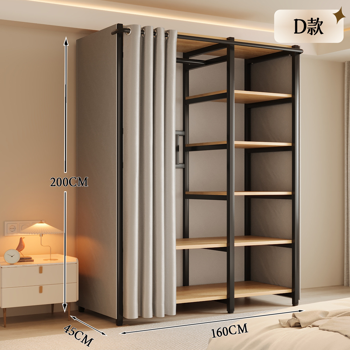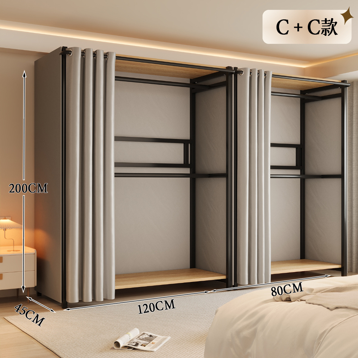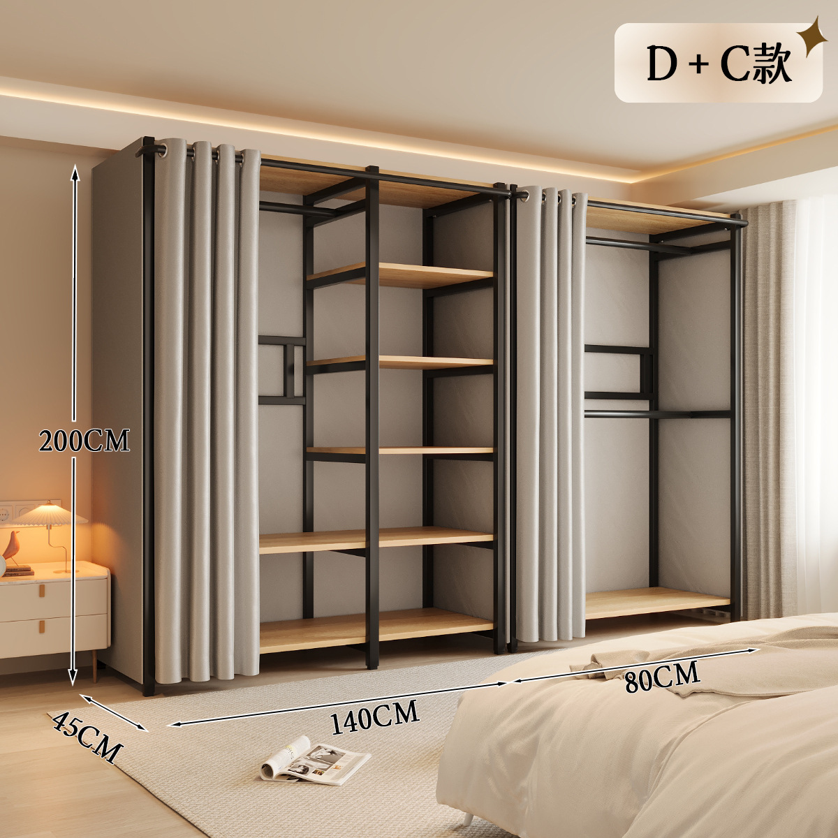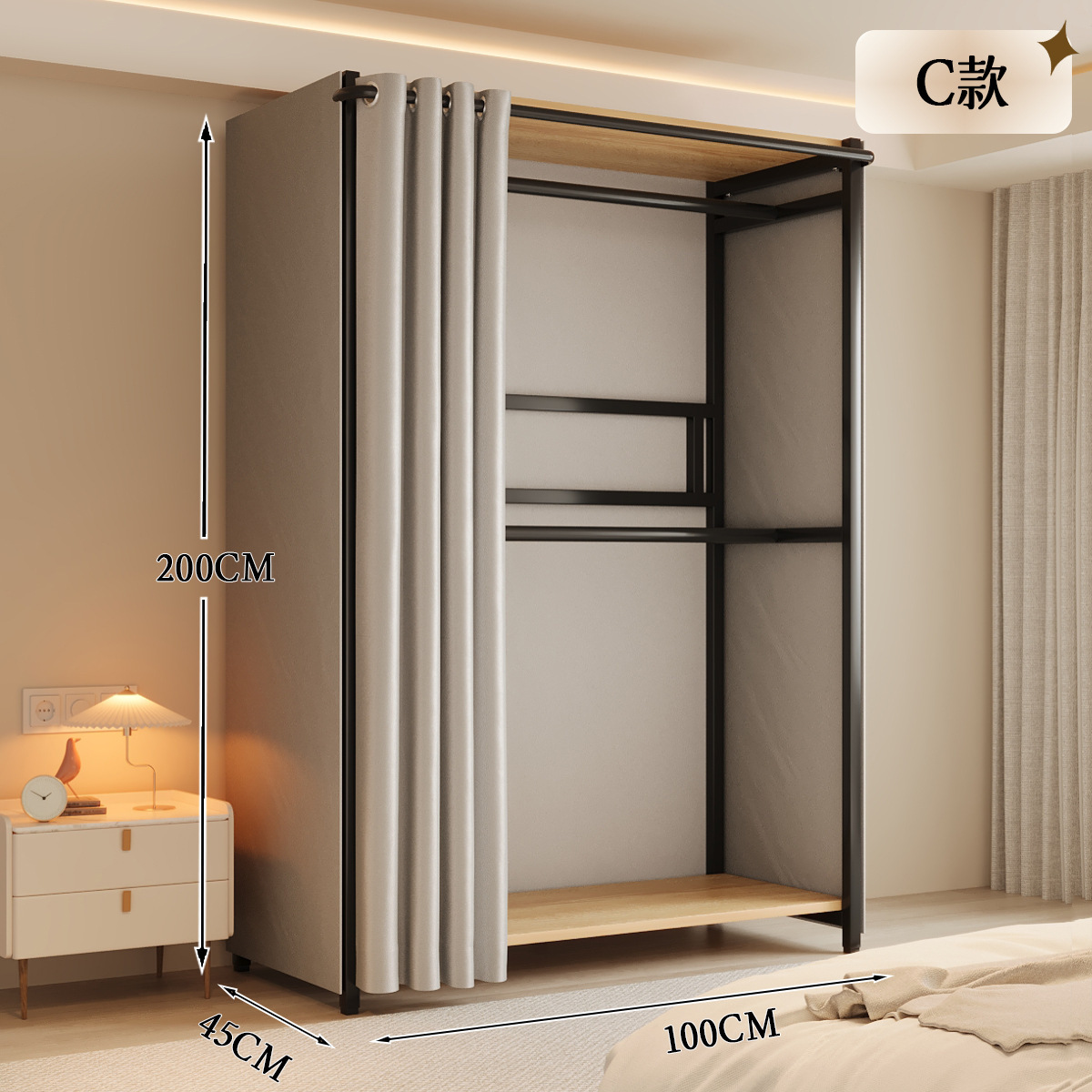 옷장 일체형 침실 홈 타입 옷장 간단한 조립 금속 옷장 두꺼운 강철 프레임