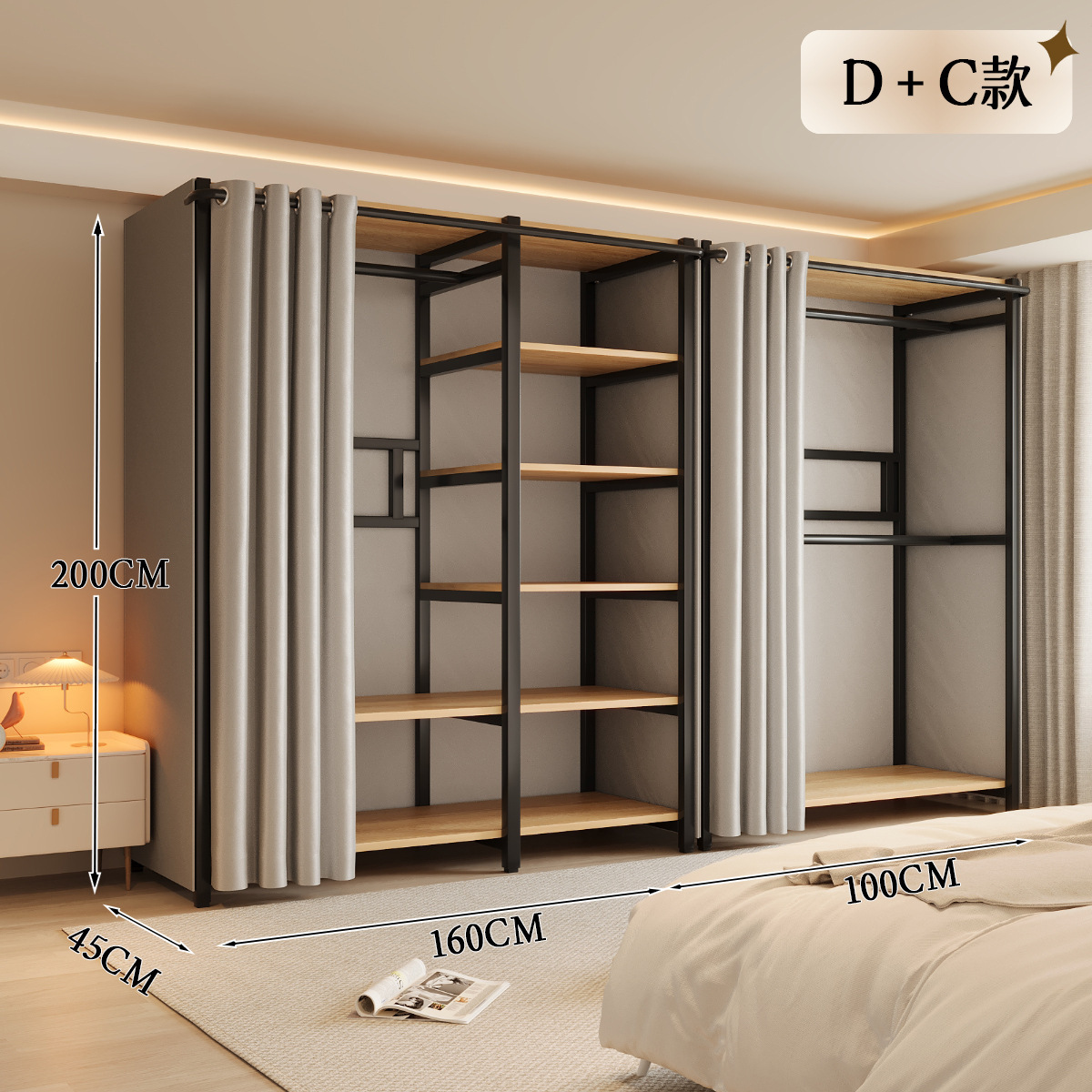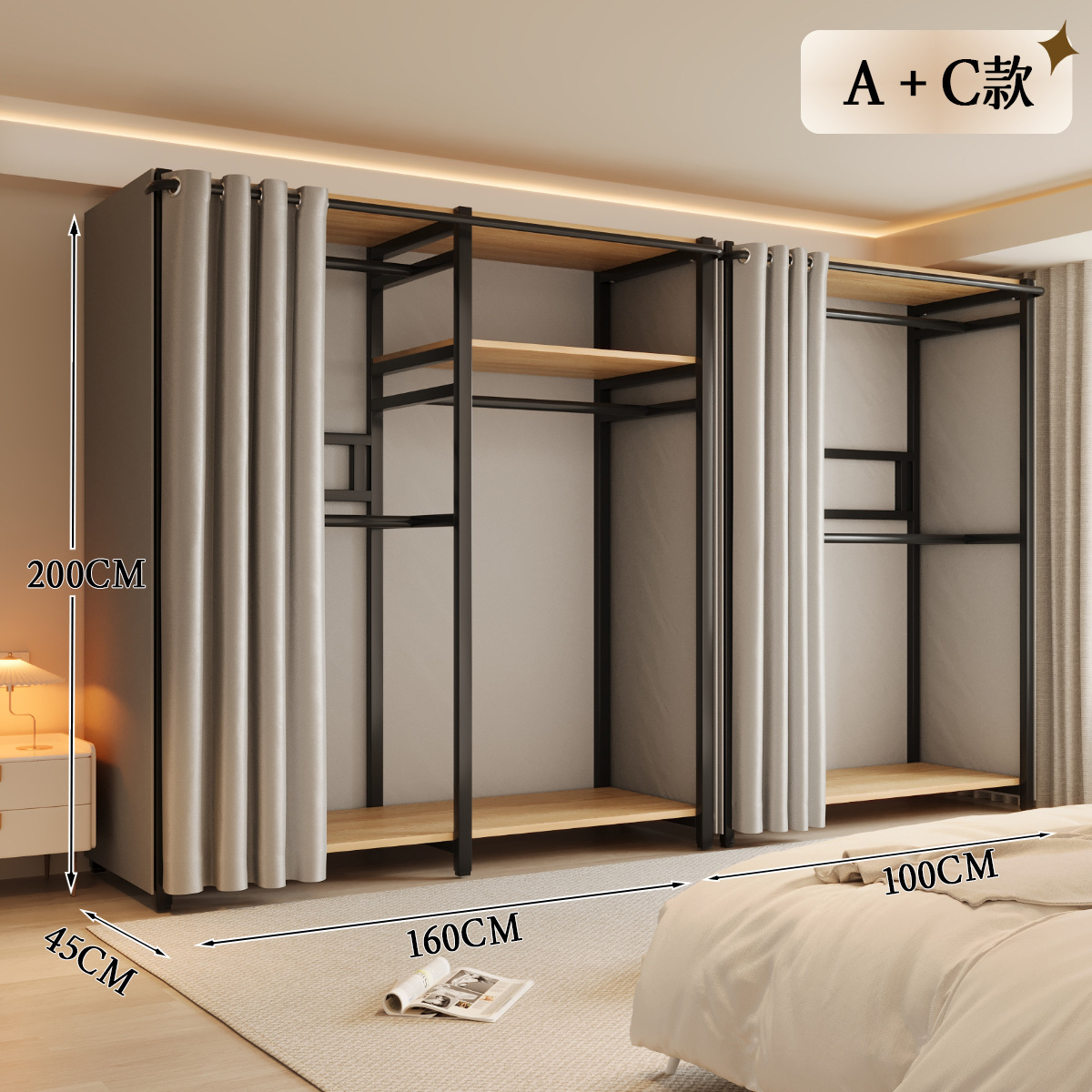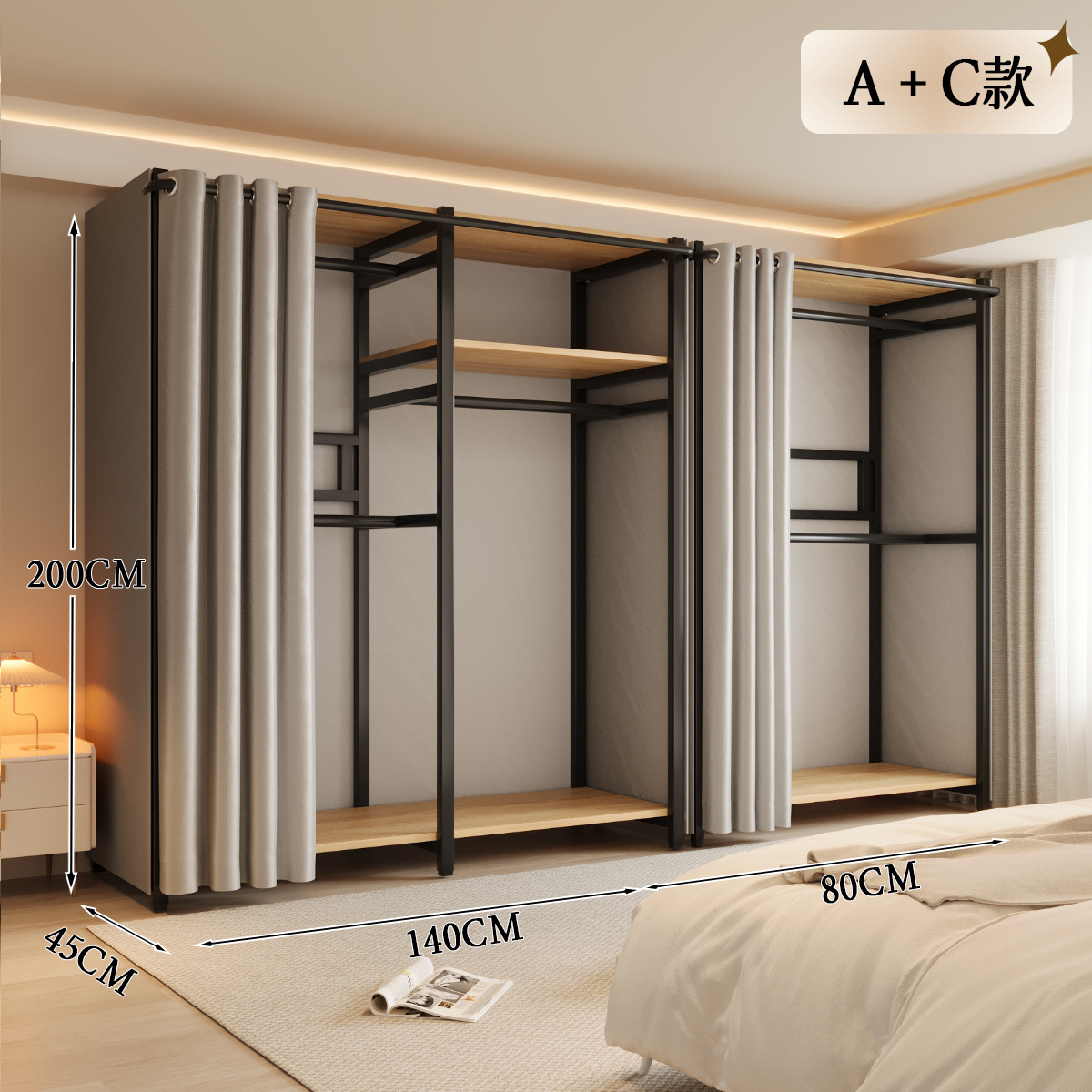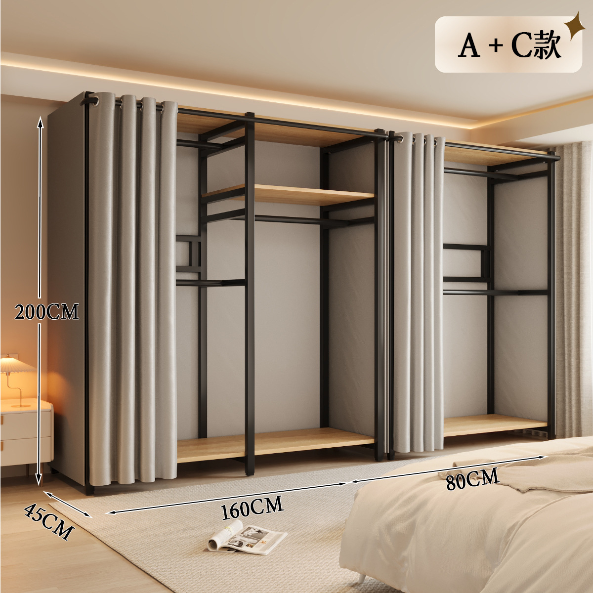 옷장 일체형 침실 홈 타입 옷장 간단한 조립 금속 옷장 두꺼운 강철 프레임