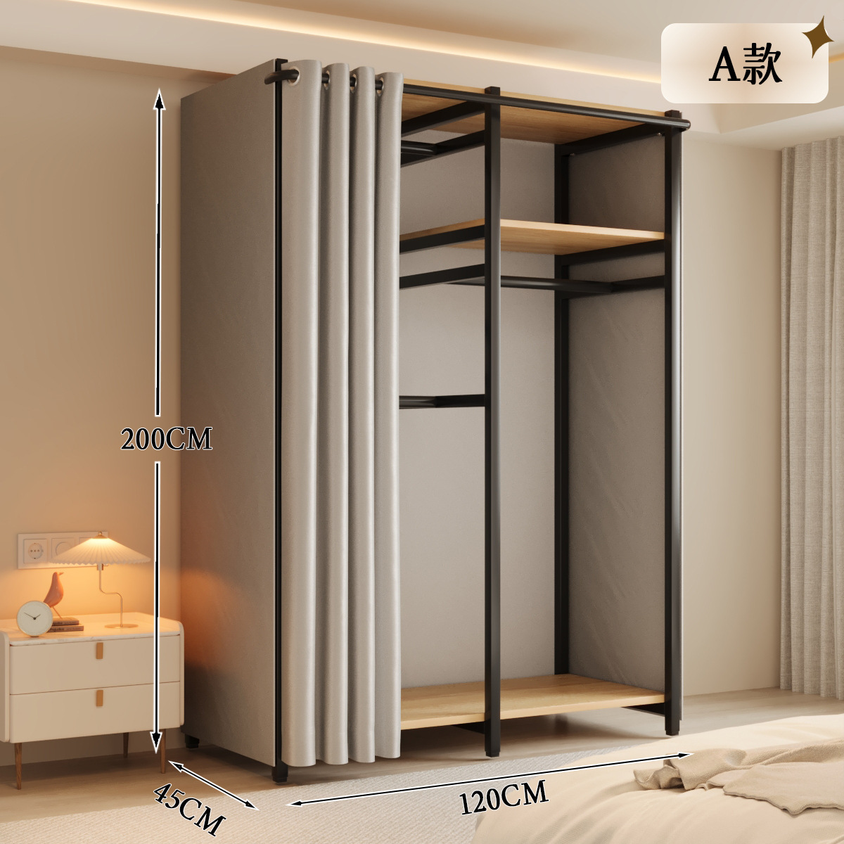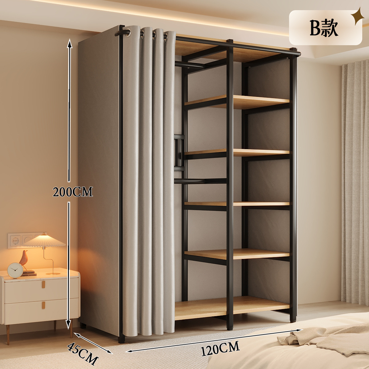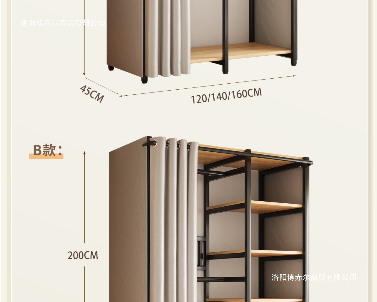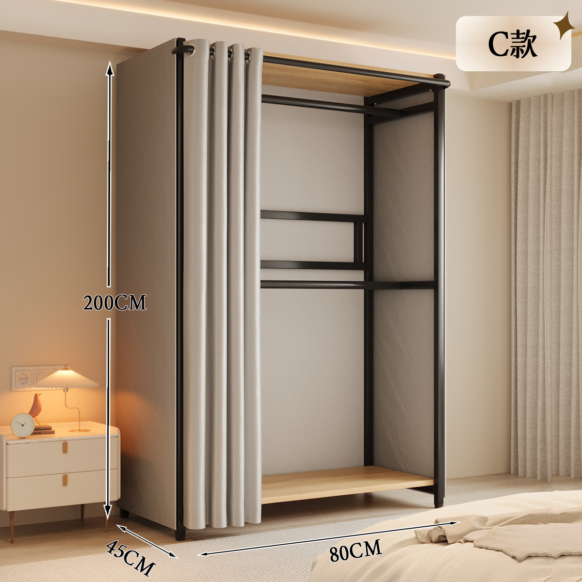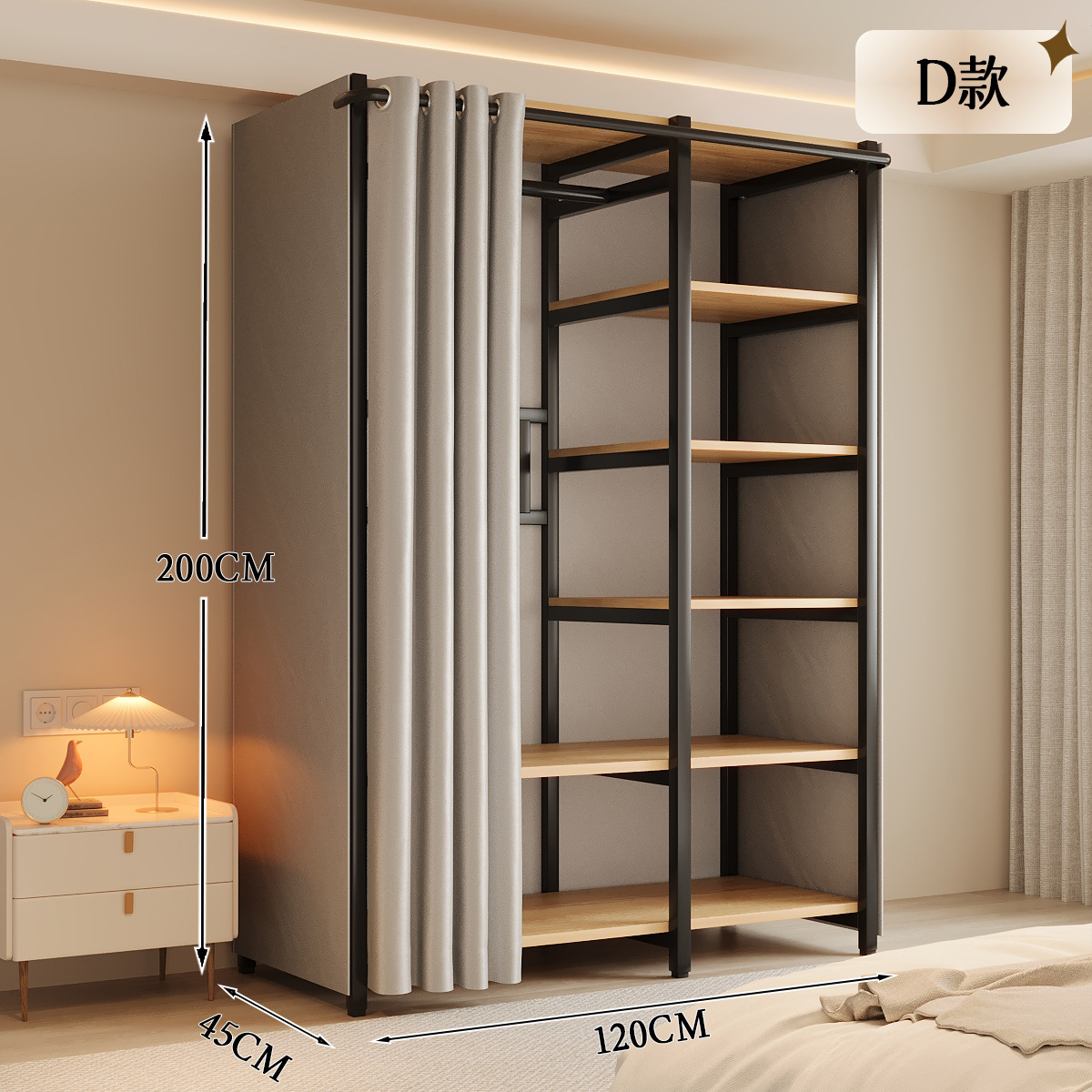 옷장 일체형 침실 홈 타입 옷장 간단한 조립 금속 옷장 두꺼운 강철 프레임