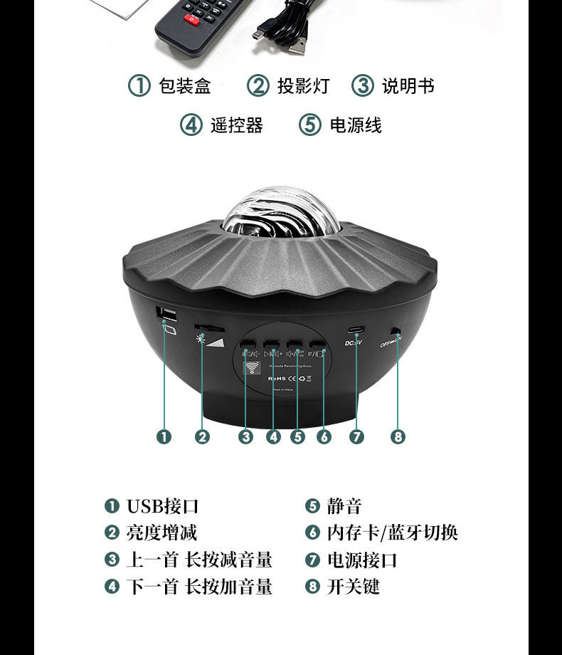 • 로맨틱한 북극광 + 별과 달 + 블루투스 스피커 # 플러그인 모델