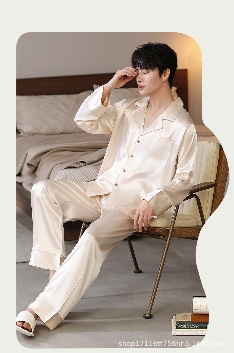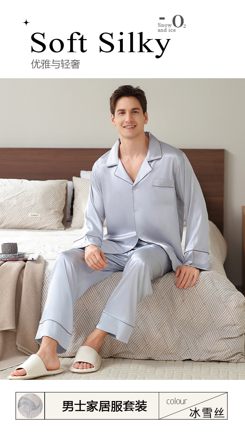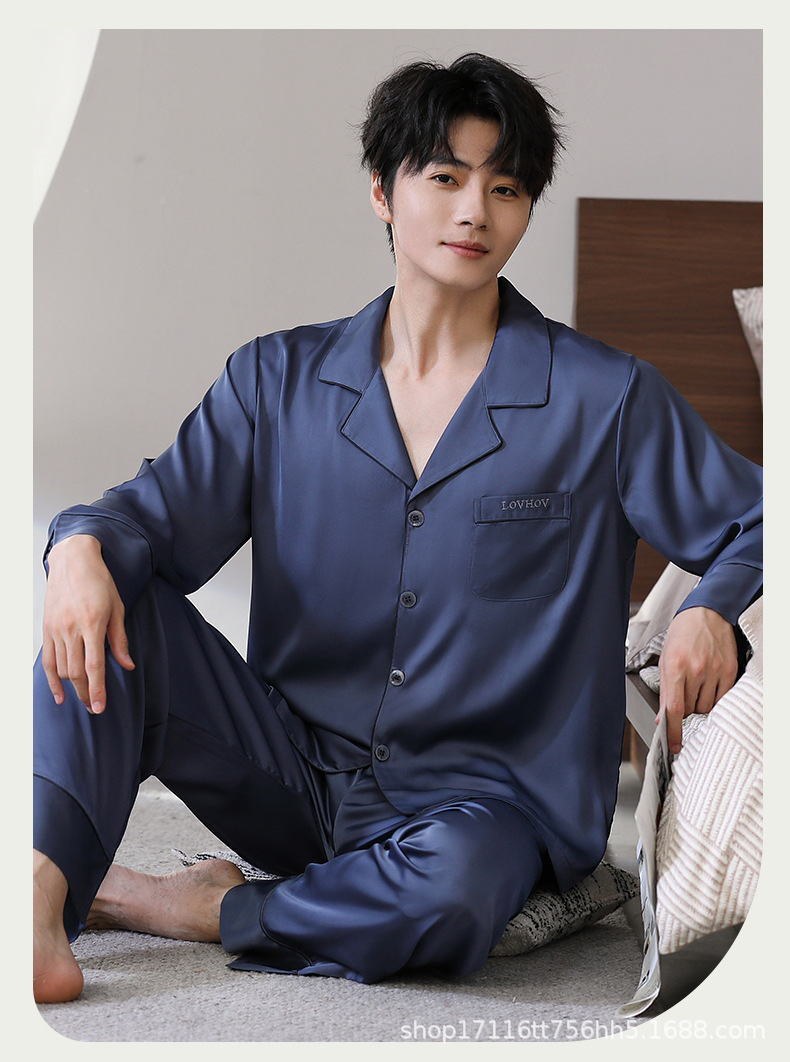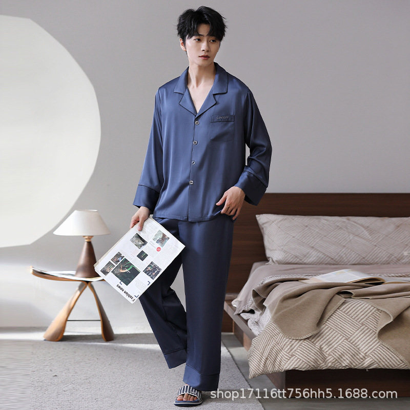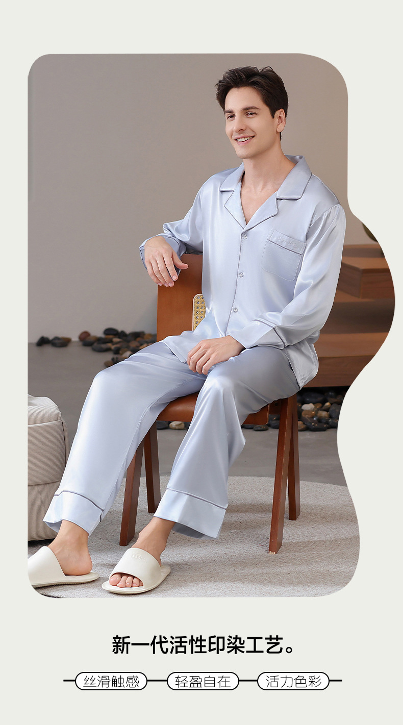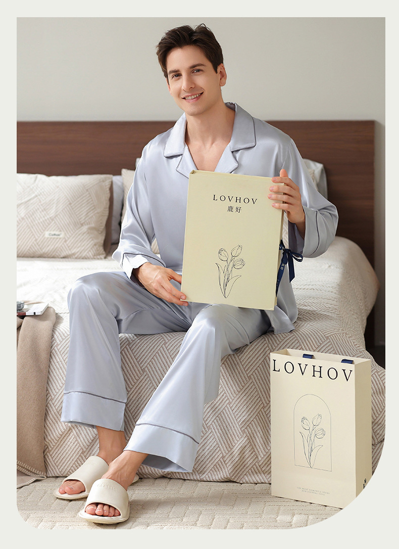 남성용 잠옷, 대형 긴팔 양복, 고급 모조 실크 가정복, 남자친구와 아빠를 위한 생일 선물