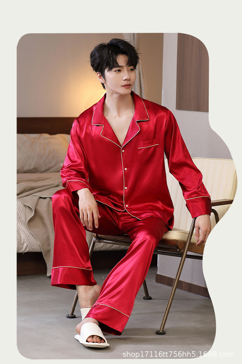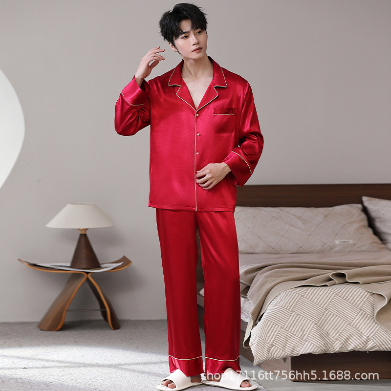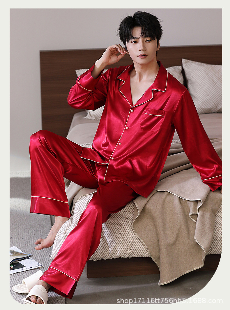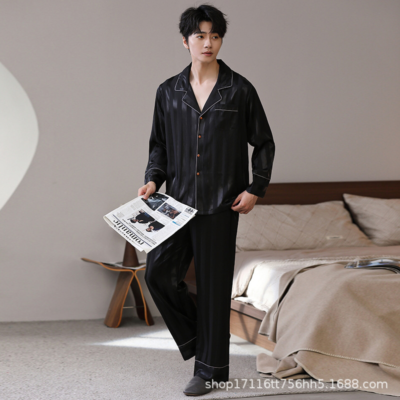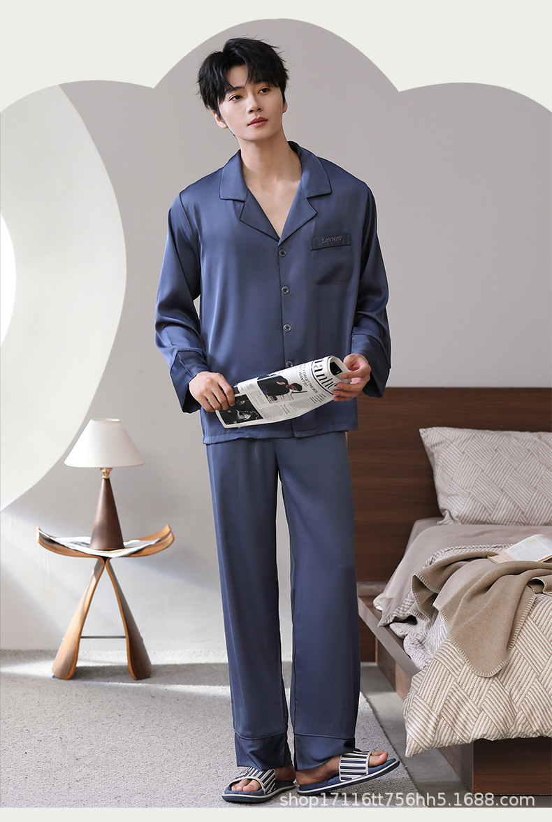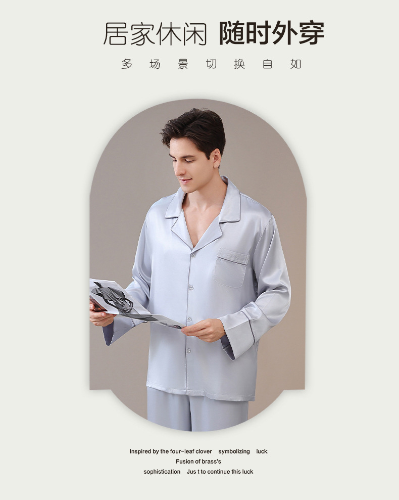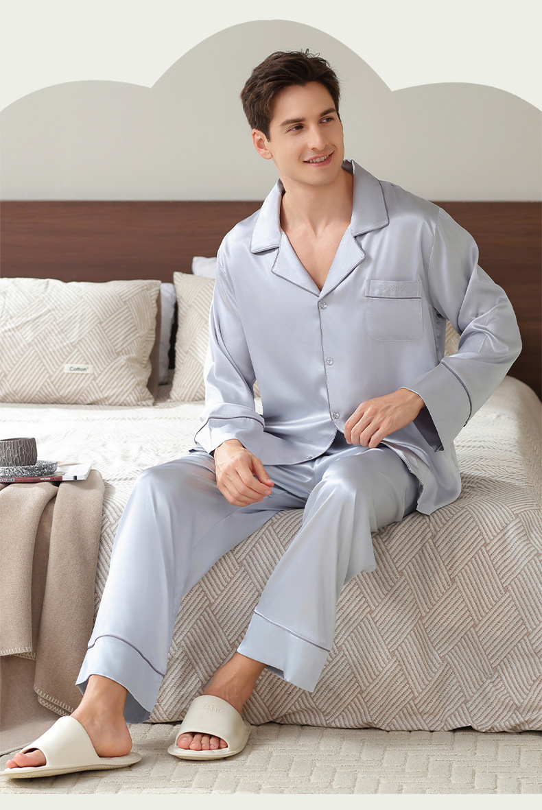 남성용 잠옷, 대형 긴팔 양복, 고급 모조 실크 가정복, 남자친구와 아빠를 위한 생일 선물