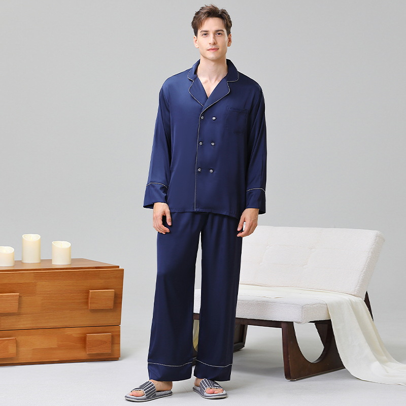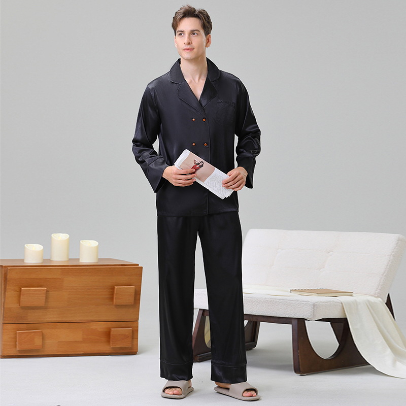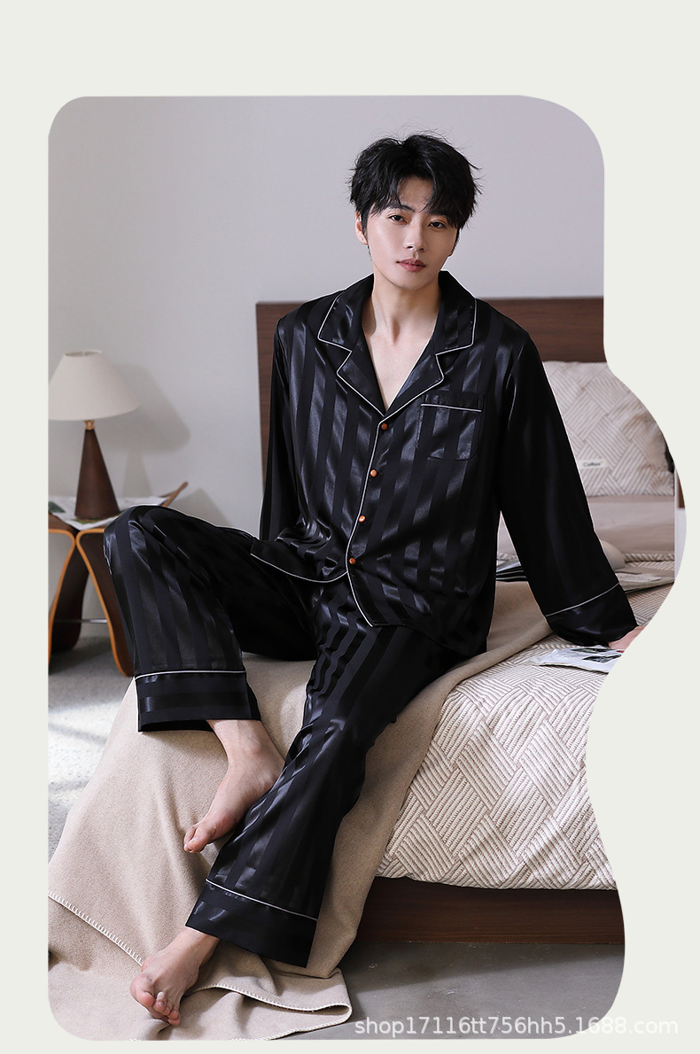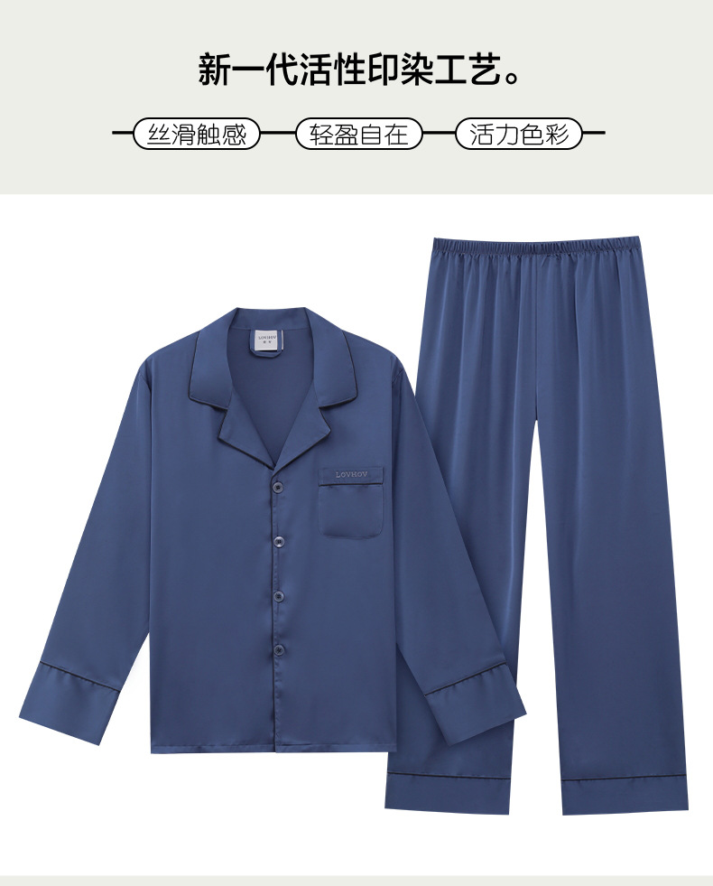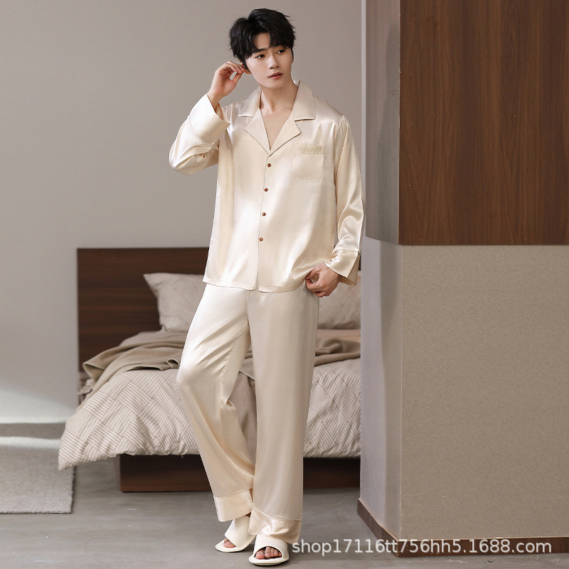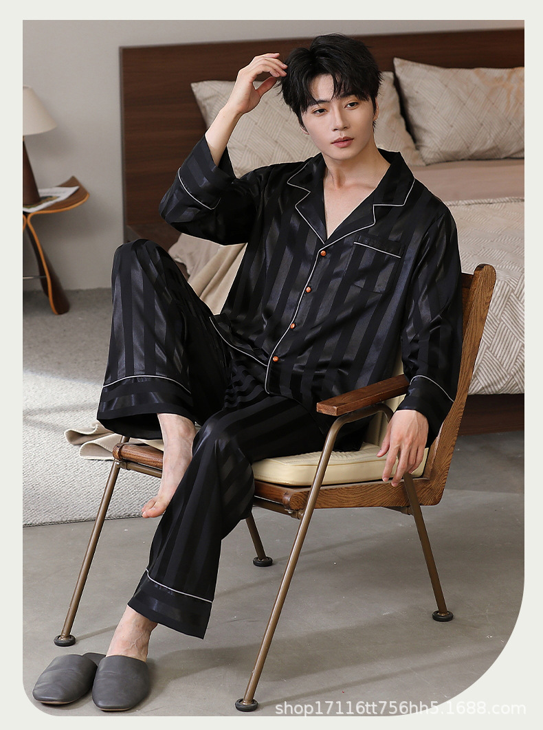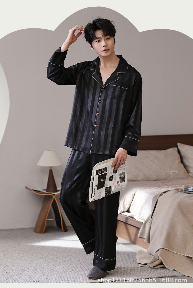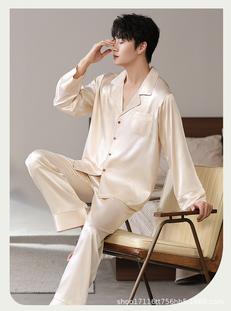 남성용 잠옷, 대형 긴팔 양복, 고급 모조 실크 가정복, 남자친구와 아빠를 위한 생일 선물