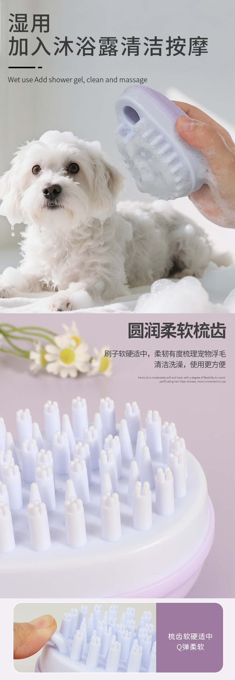 애완동물 목욕 브러시 물방울 개 목욕 브러시 고양이 청소 헤어 샤워 젤 저장 애완동물 용품