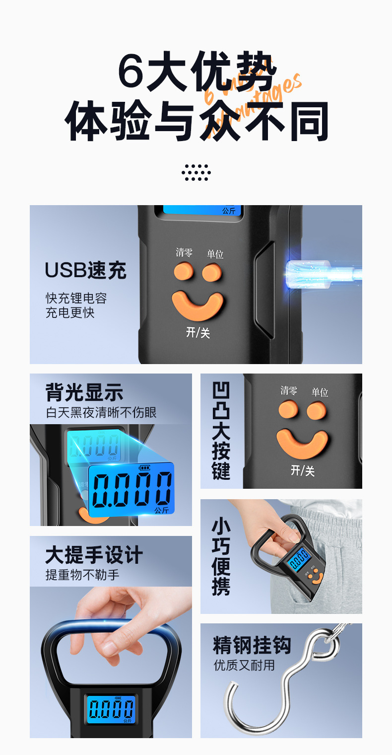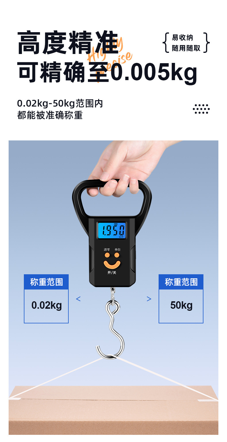 고정밀 미니 휴대용 전자 저울 50kg 휴대용 홈 익스프레스 저울 작은 스케일 스프링 쇼핑을위한 작은 후크
