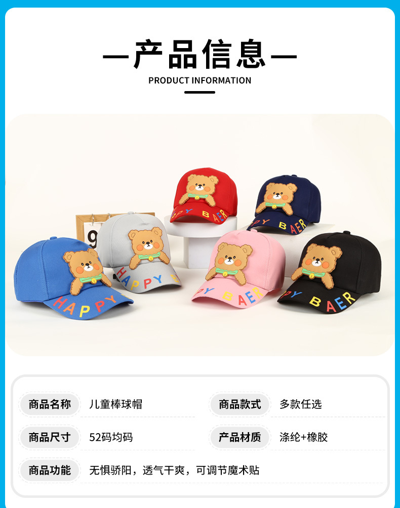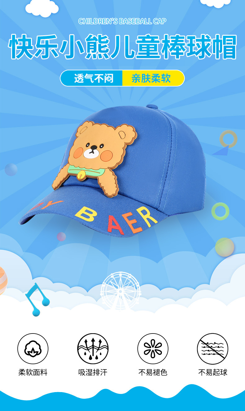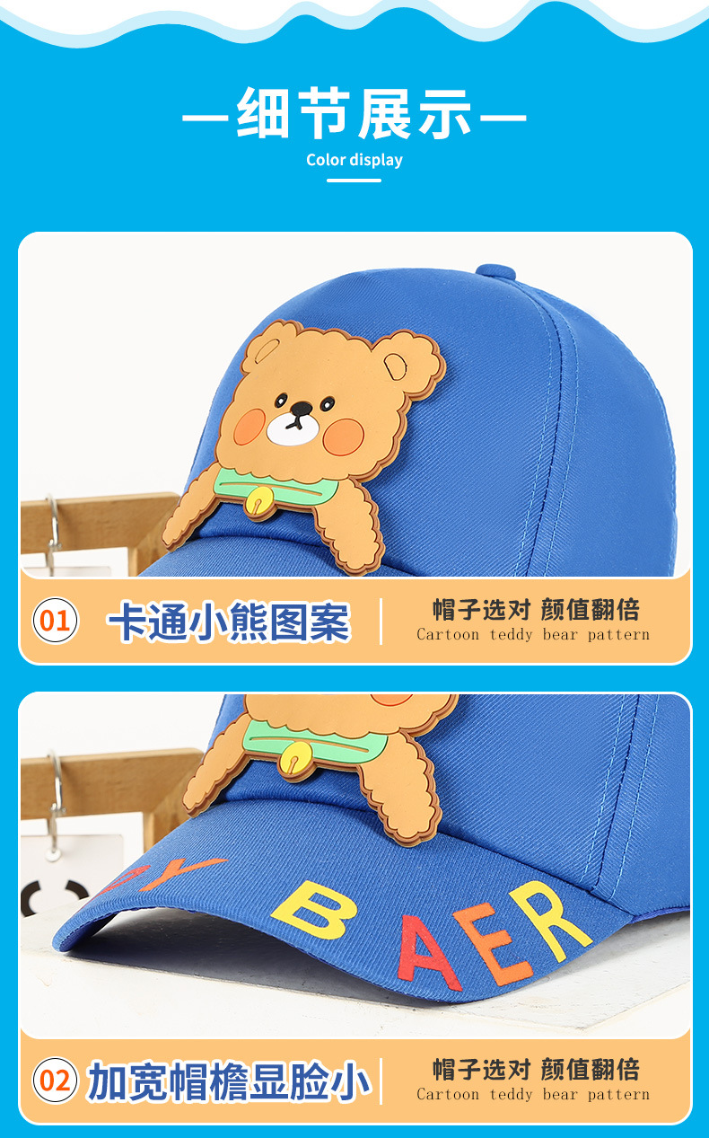 국경 간 공급 새로운 고무 만화 곰 귀여운 다목적 여름 양산 소년과 소녀를위한 어린이 야구 모자