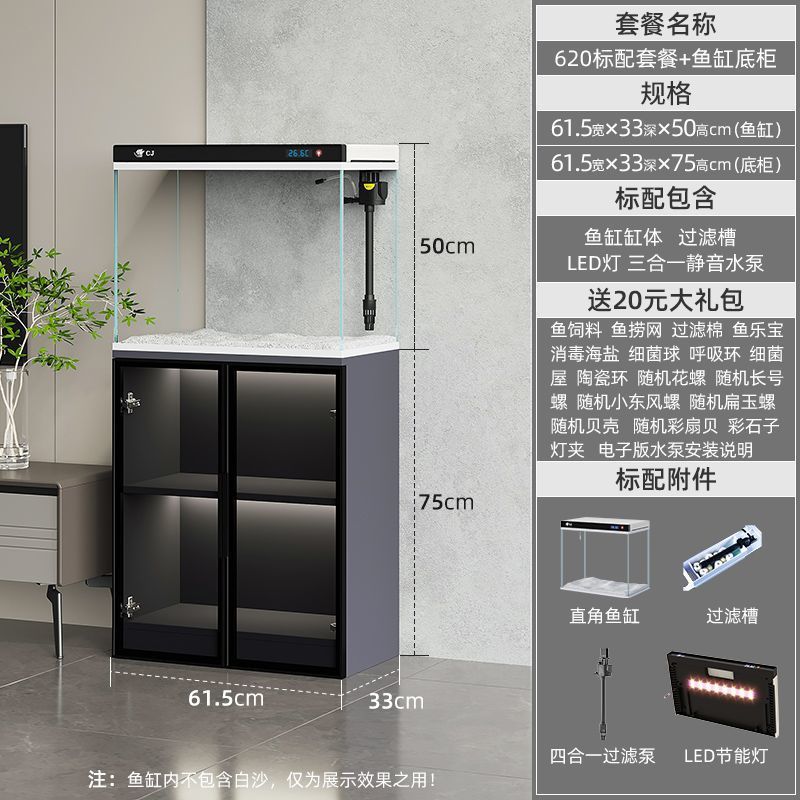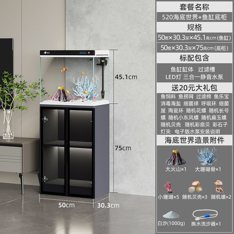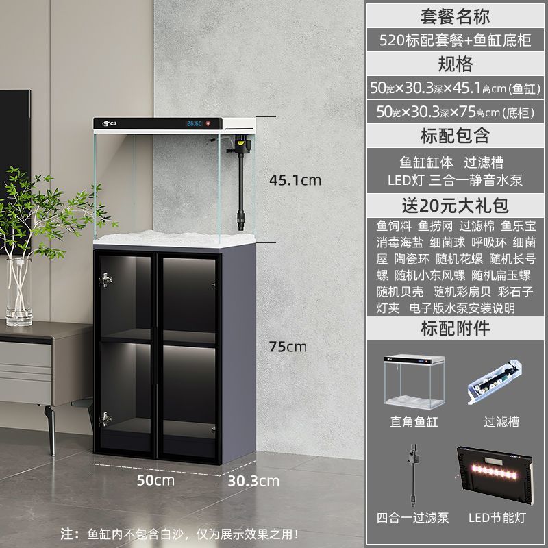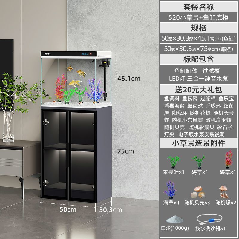 • 600 스마트 이탈리아 수조 + 회색 캐비닛 + 수생 식물 풍경 선물 패키지