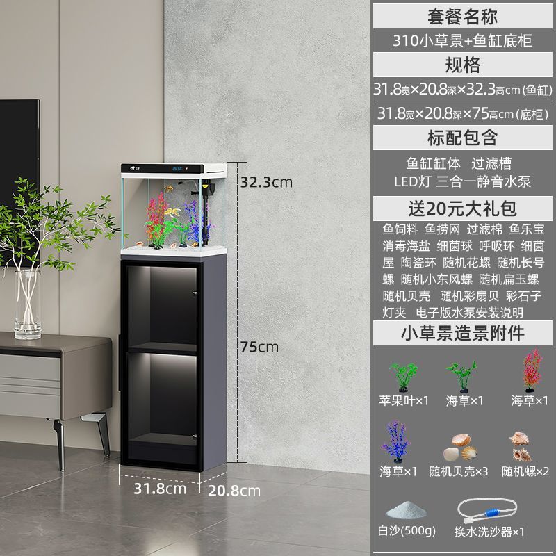 새로운 수조 거실 작은 바닥 유리 금붕어 수조 가정용 물 교체 없음 캐비닛 수직 수족관
