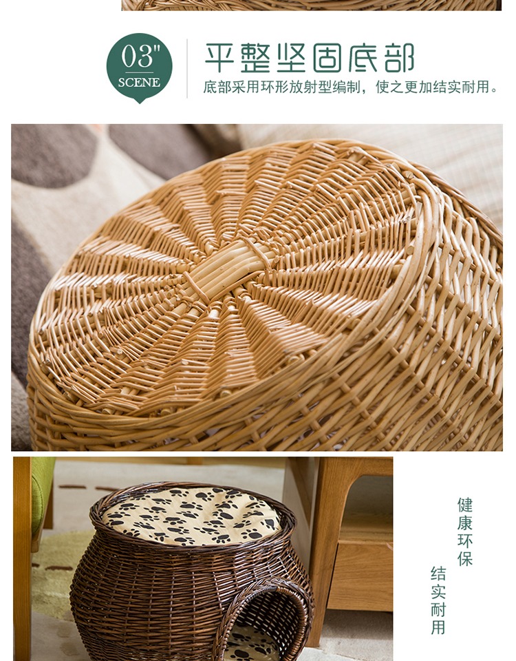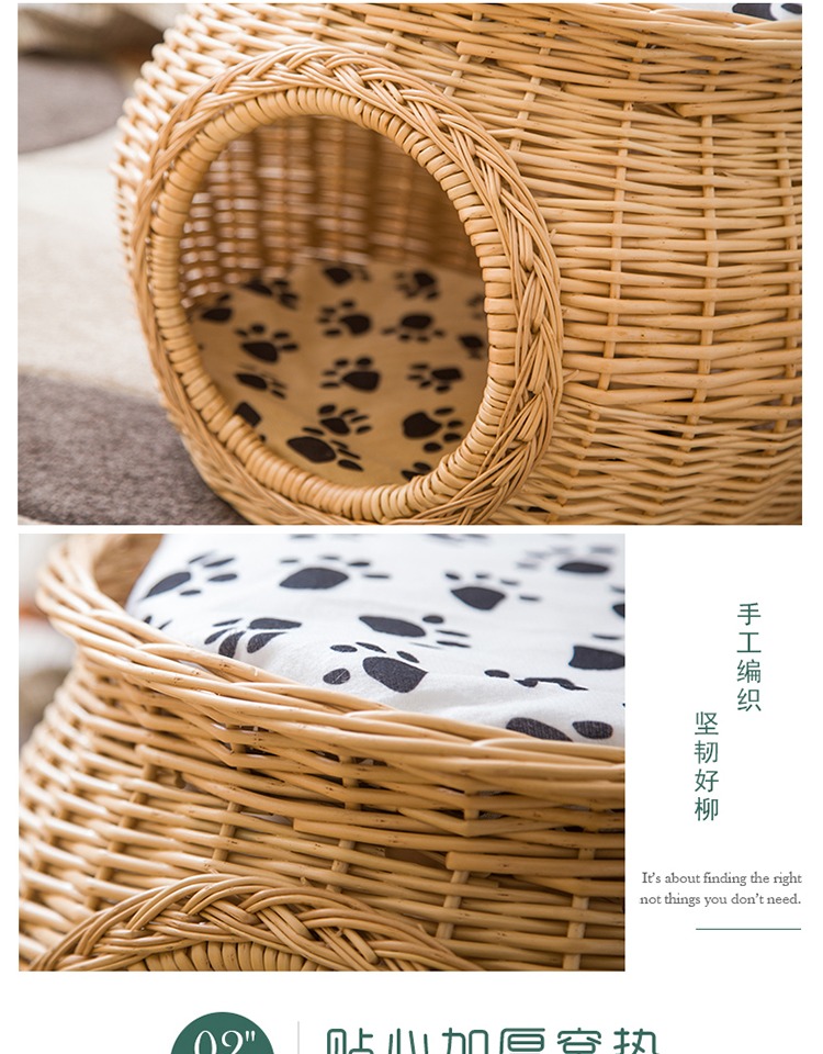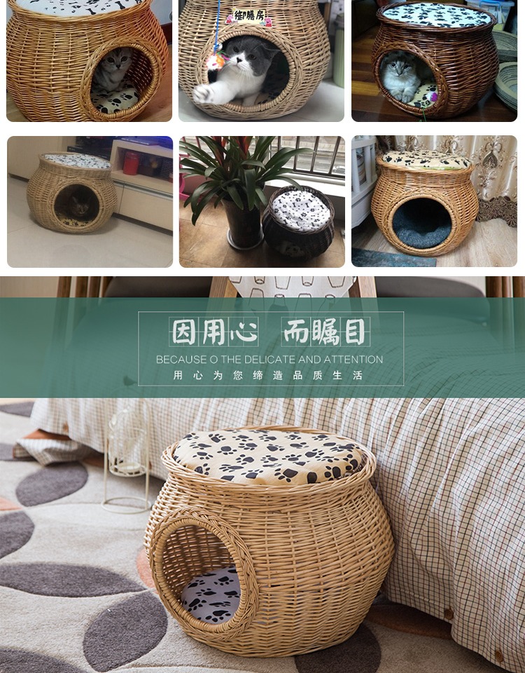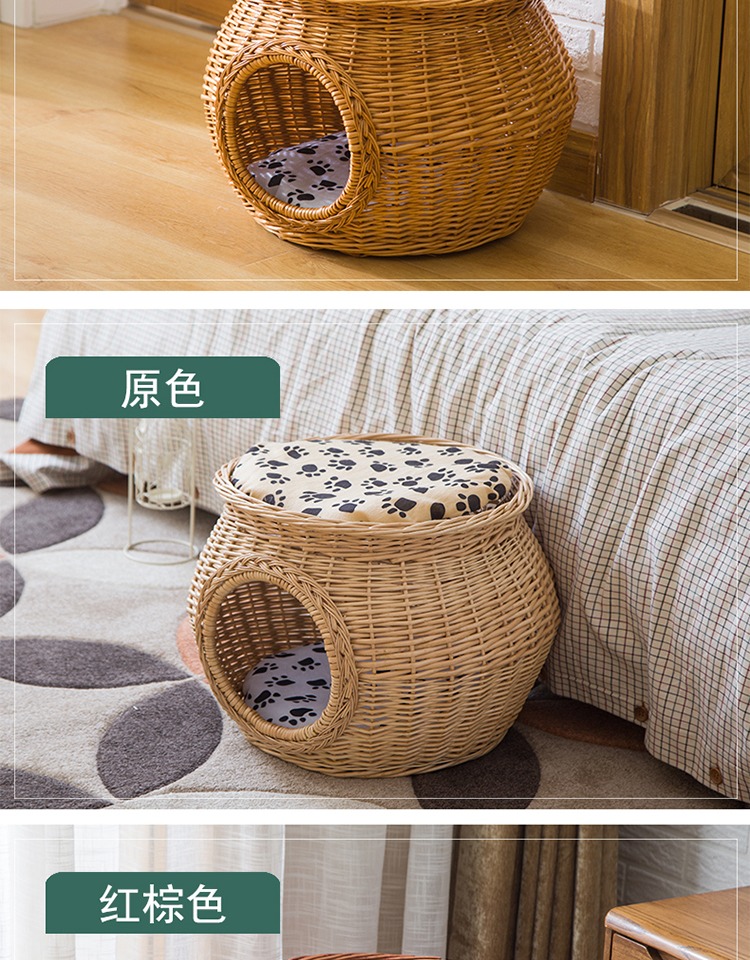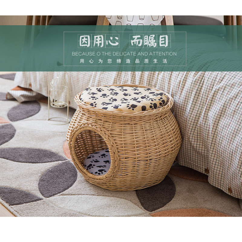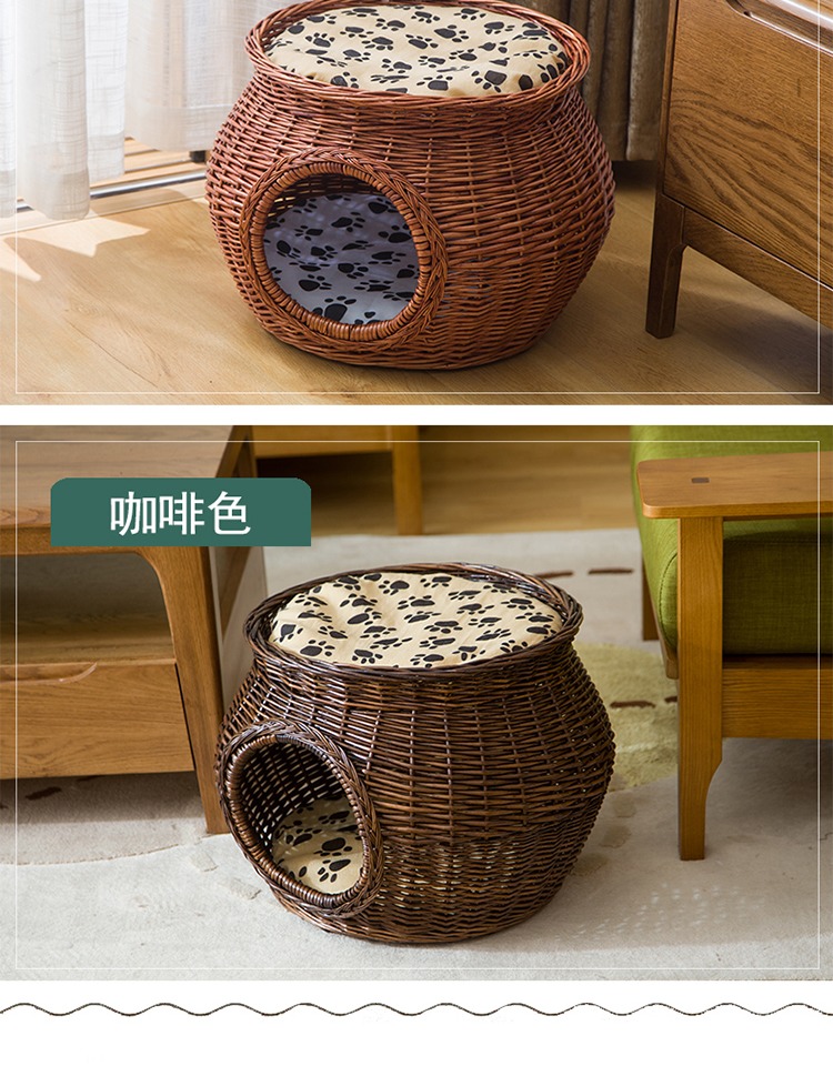 등나무 고양이 개집, 시즌 쿨 개집, 등나무 고양이 집, 고양이 집, 빌라, 소형 개집, 사계절 모두 사용 가능, 탈부착 가능