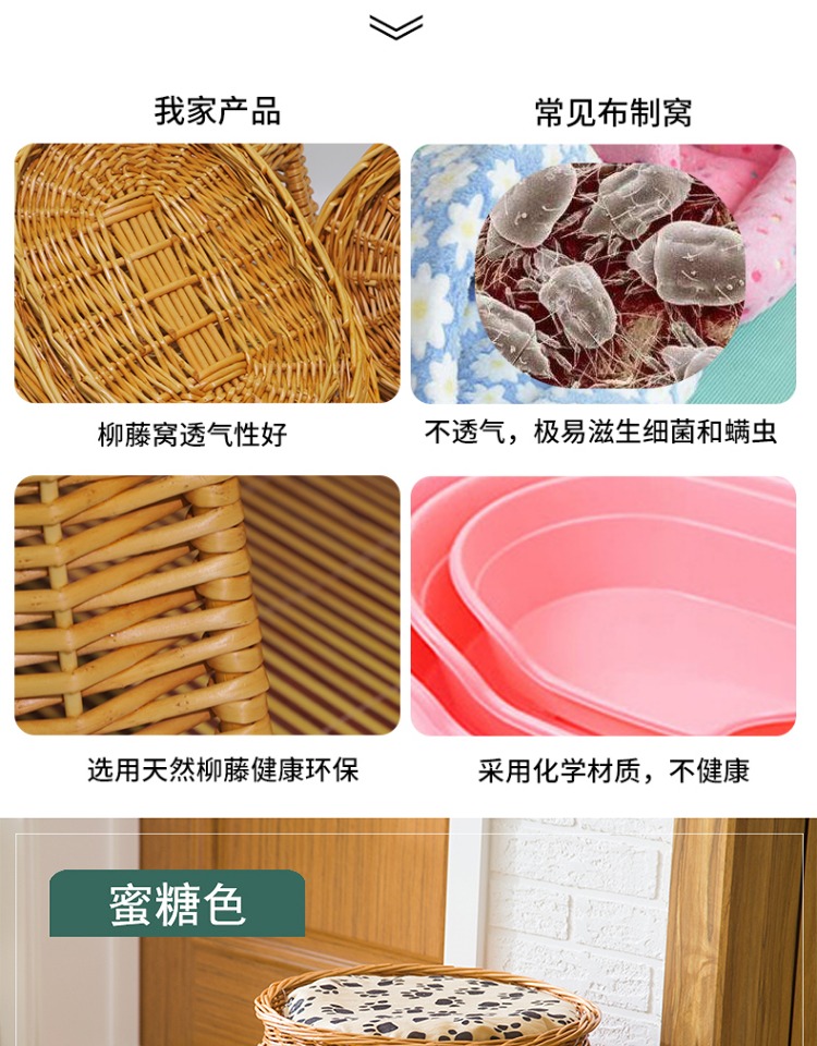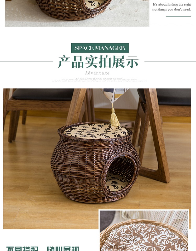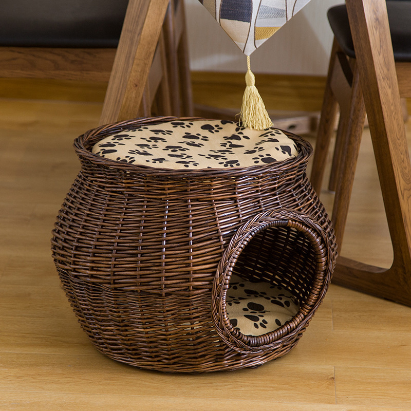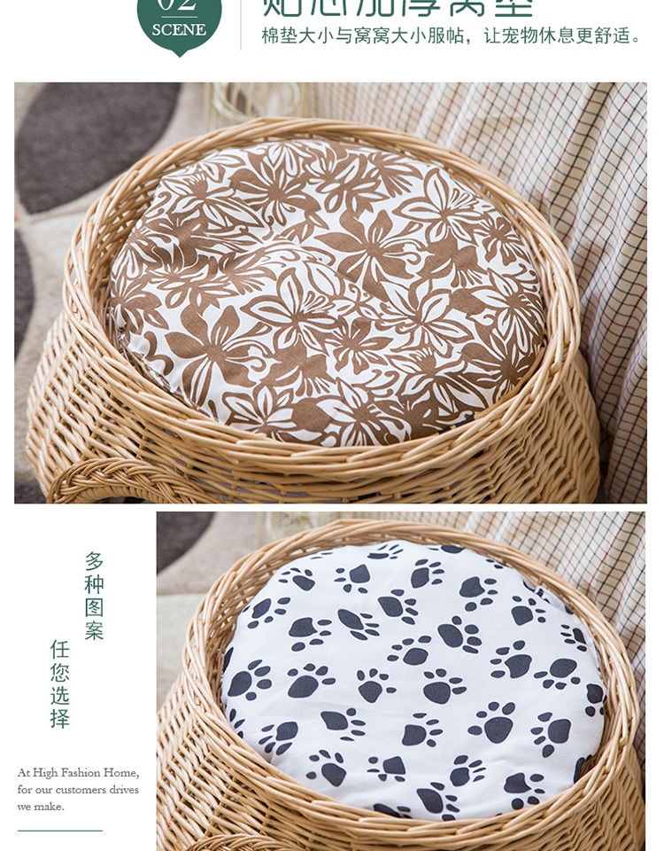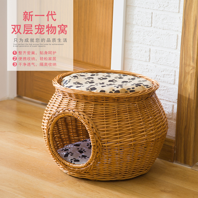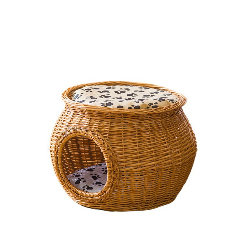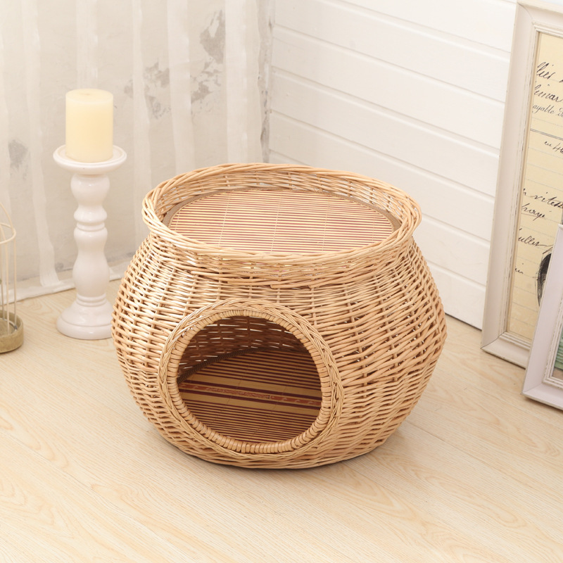 등나무 고양이 개집, 시즌 쿨 개집, 등나무 고양이 집, 고양이 집, 빌라, 소형 개집, 사계절 모두 사용 가능, 탈부착 가능