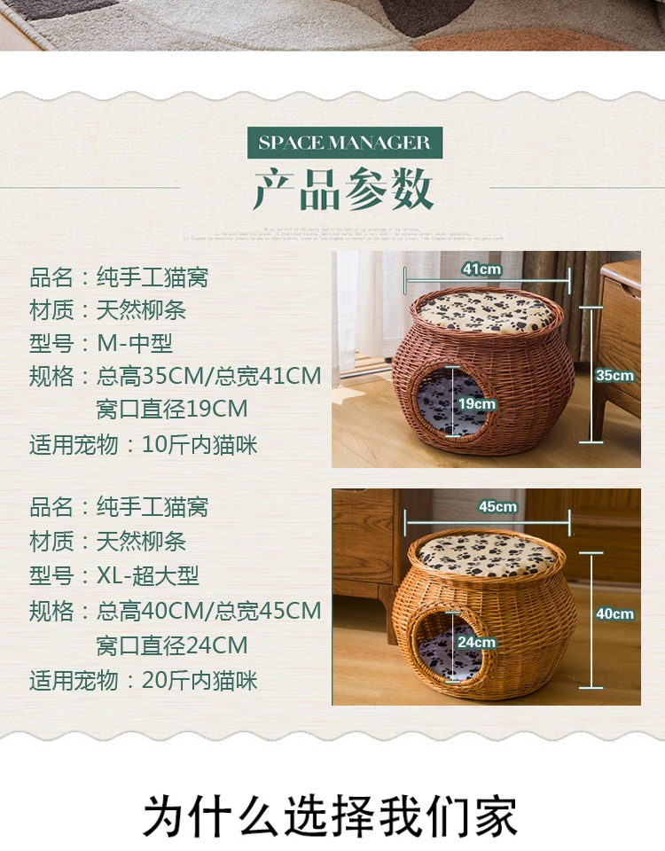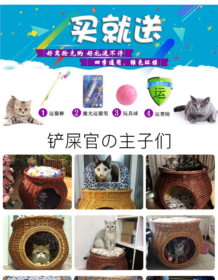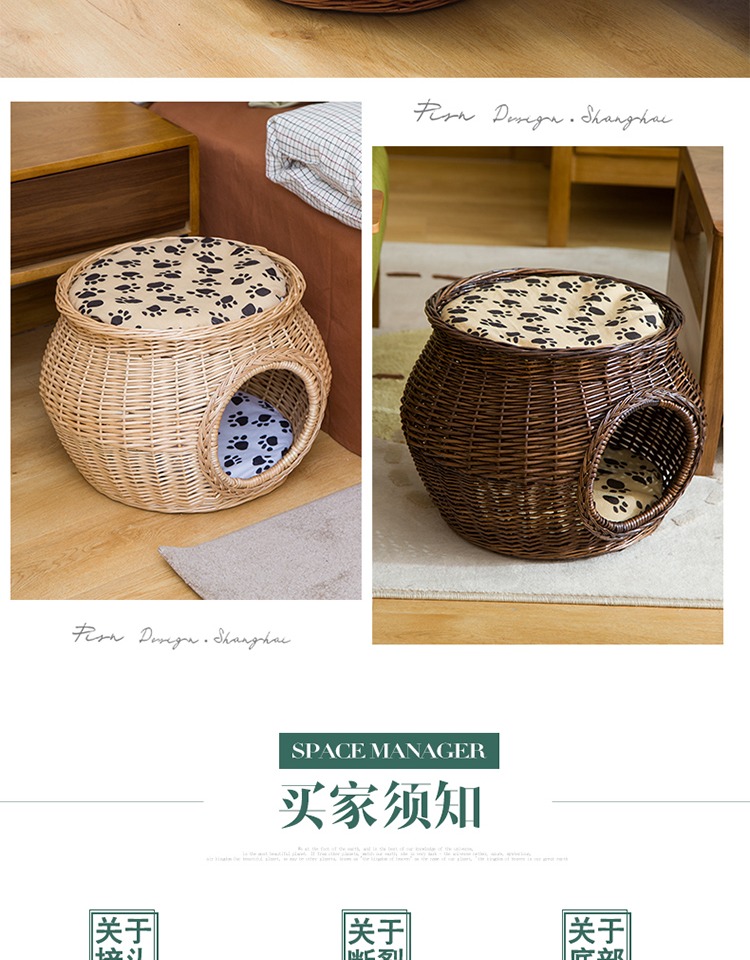등나무 고양이 개집, 시즌 쿨 개집, 등나무 고양이 집, 고양이 집, 빌라, 소형 개집, 사계절 모두 사용 가능, 탈부착 가능스토어 가기