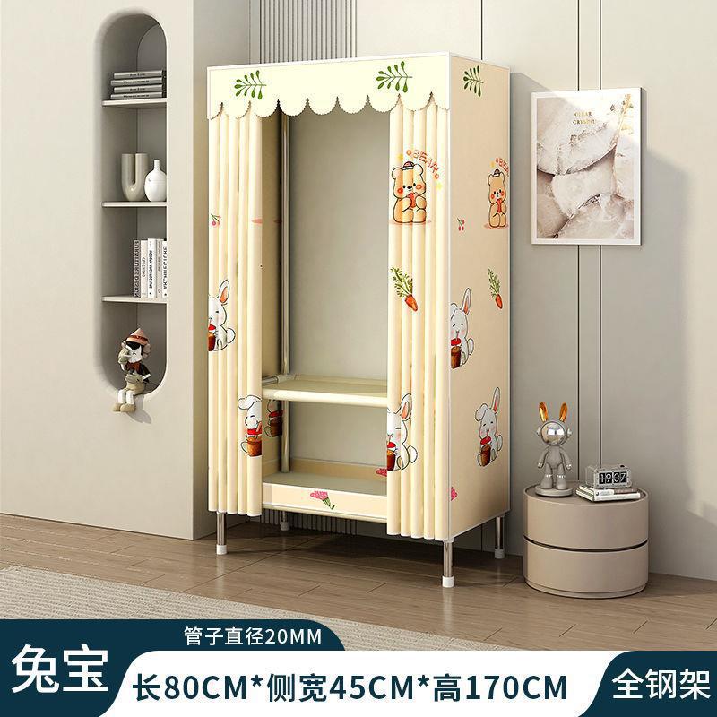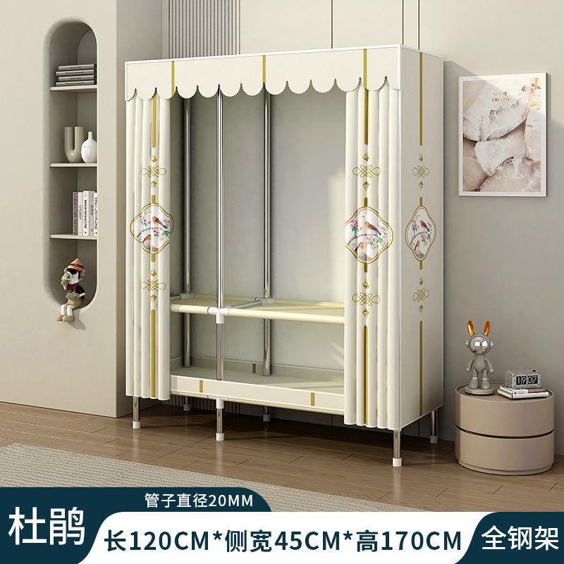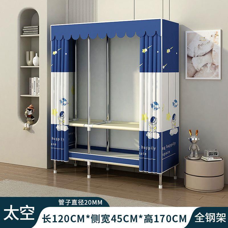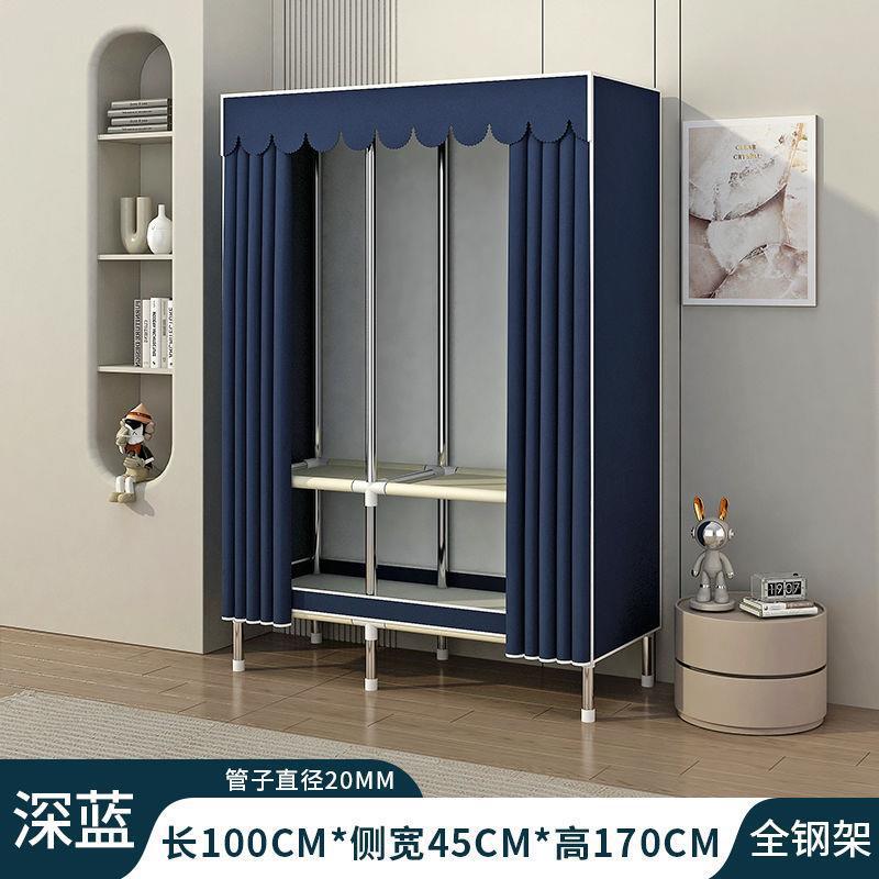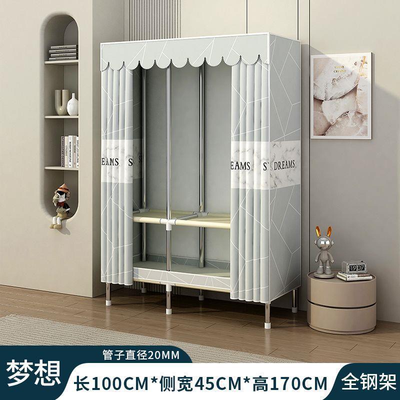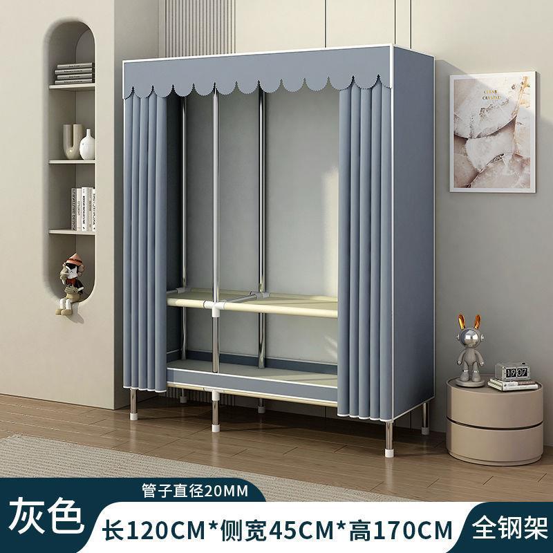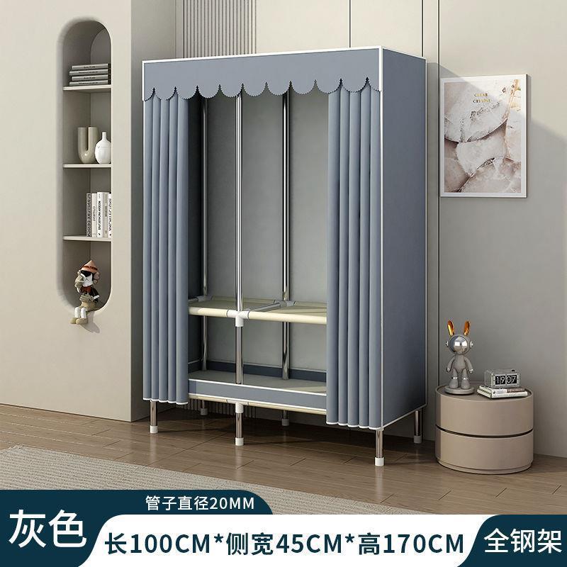 간단한 옷장 임대 침실 조립 강철 파이프 강철 프레임 강화 두꺼운 가정용 단색 천 옷장 신규스토어 가기