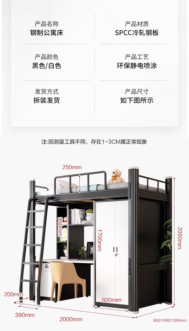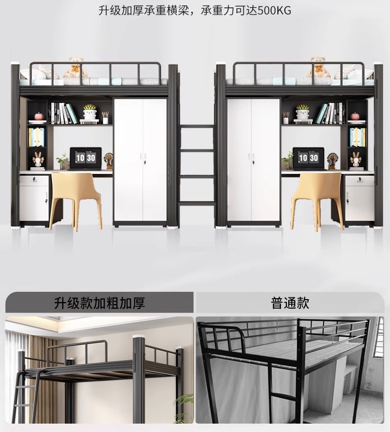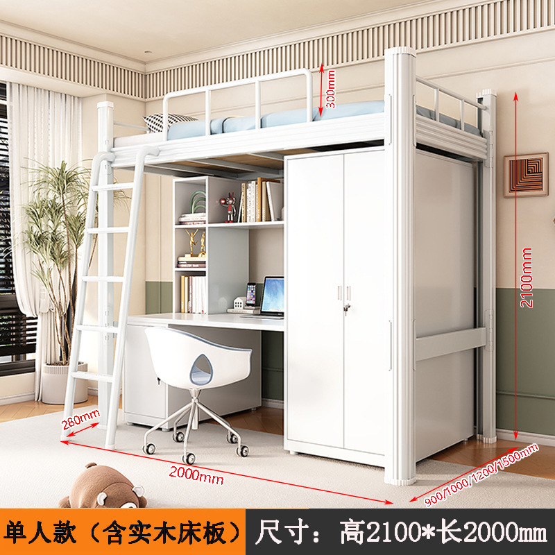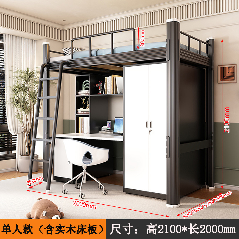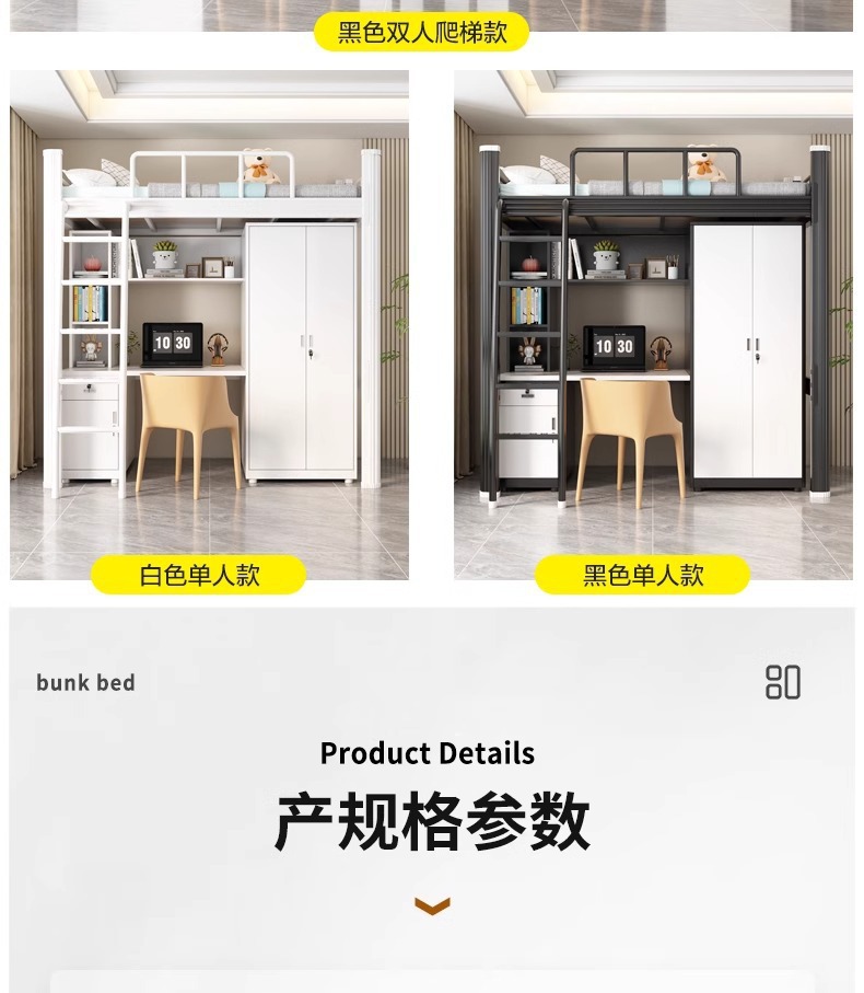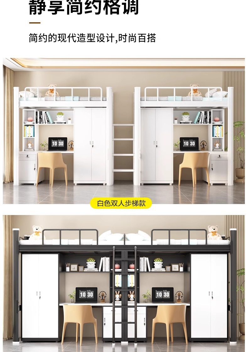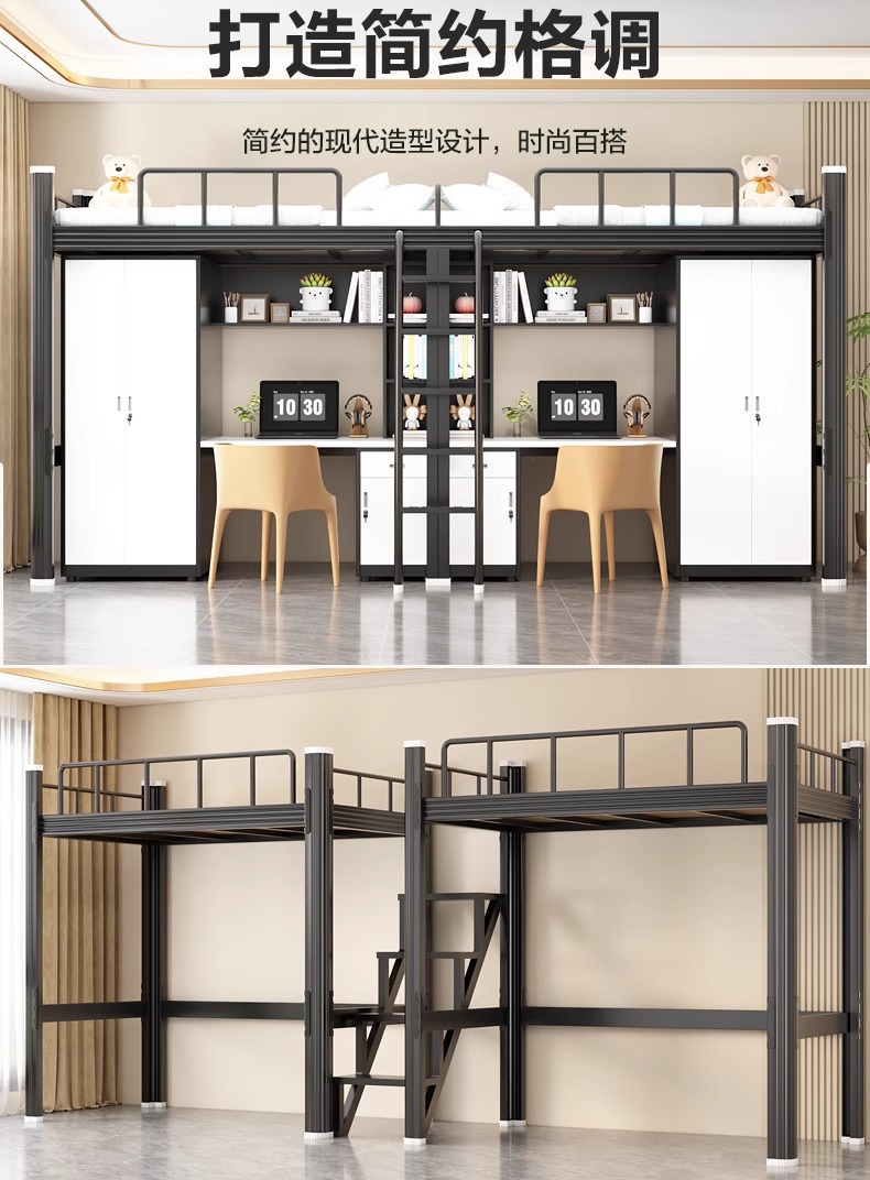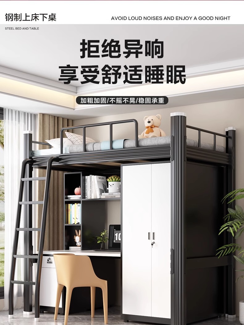 현대적인 미니멀리스트 학교 철제 프레임 침대 책상 포함 로프트 침대 침실 냉간 압연 강철 조합 침대 아파트 상단 침대 및 하단 테이블스토어 가기